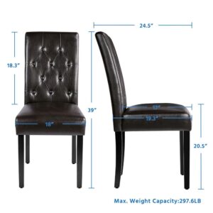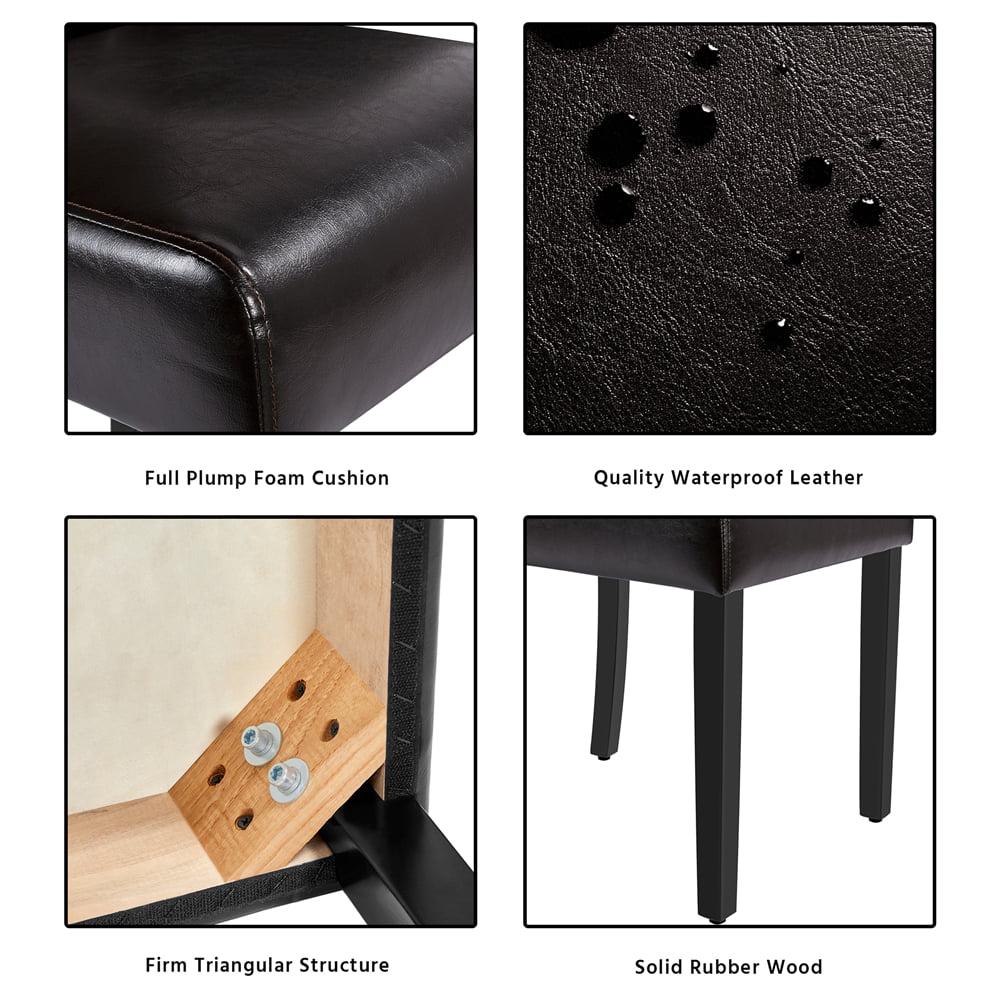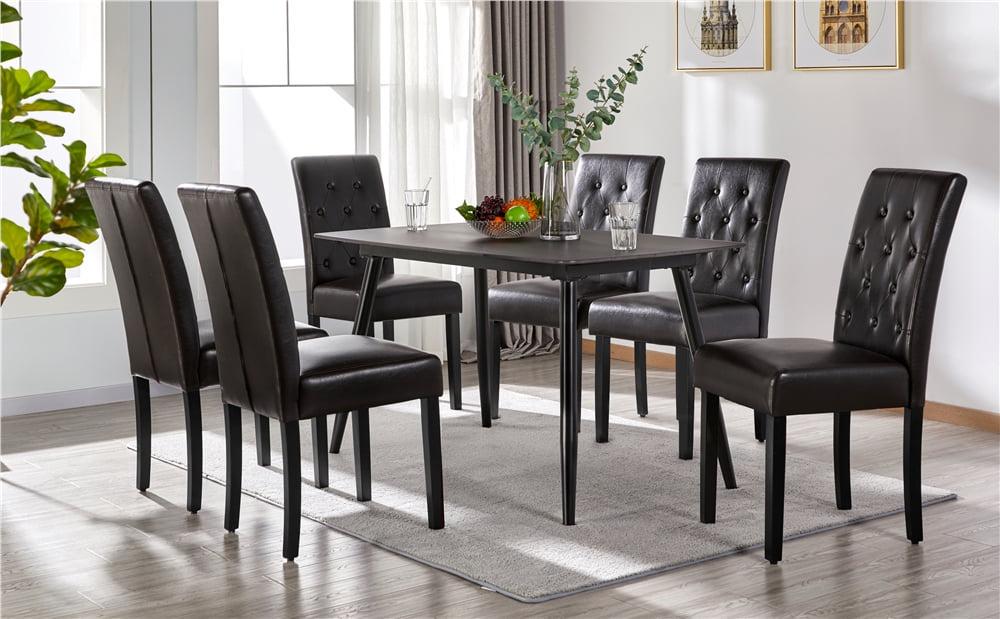 – Sturdy and Durable: This 6pcs dining chair set is constructed of a strong wooden frame with high-quality rubber wood legs, elastic soft foam, as well as durable and waterproof PVC leather. The quality materials ensure the set of dining chairs will last for years.
