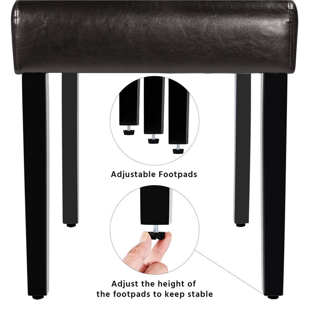 This set of dining chairs is constructed of a strong wooden frame with high-quality rubberwood legs, elastic soft foam, durable and waterproof PVC leather. The dining chair seat and high backrest provide you with a larger sitting room and a more comfortable experience. Filled with more high-density foam in the seats and backrests will not let you feel tired after long-time sitting. The front legs are designed with adjustable feet caps to keep the chair height balanced. Sold in a set of 6 chairs. Designed and manufactured elaborately, these dining chairs could be a good choice when you are looking for a piece of kitchen and dining room furniture. The modern and clean style will correspond with any space you intend it for, lobbies, meetings, hotels, restaurants, banquets, and more.