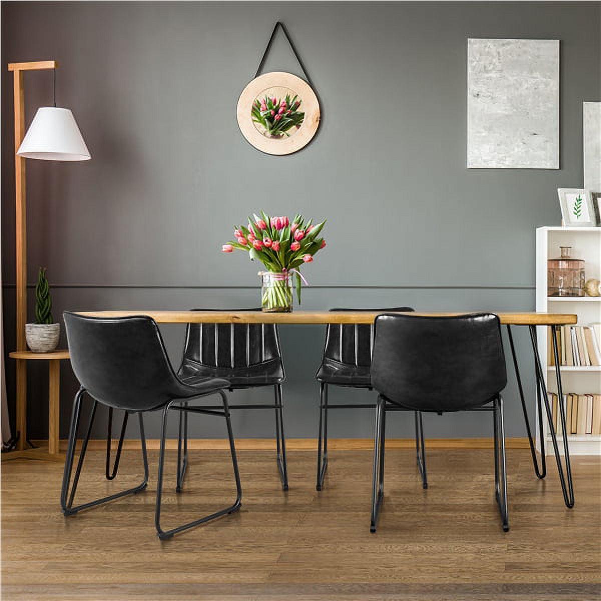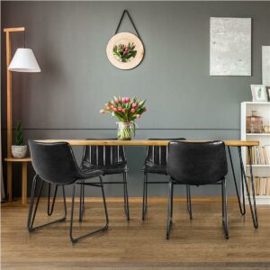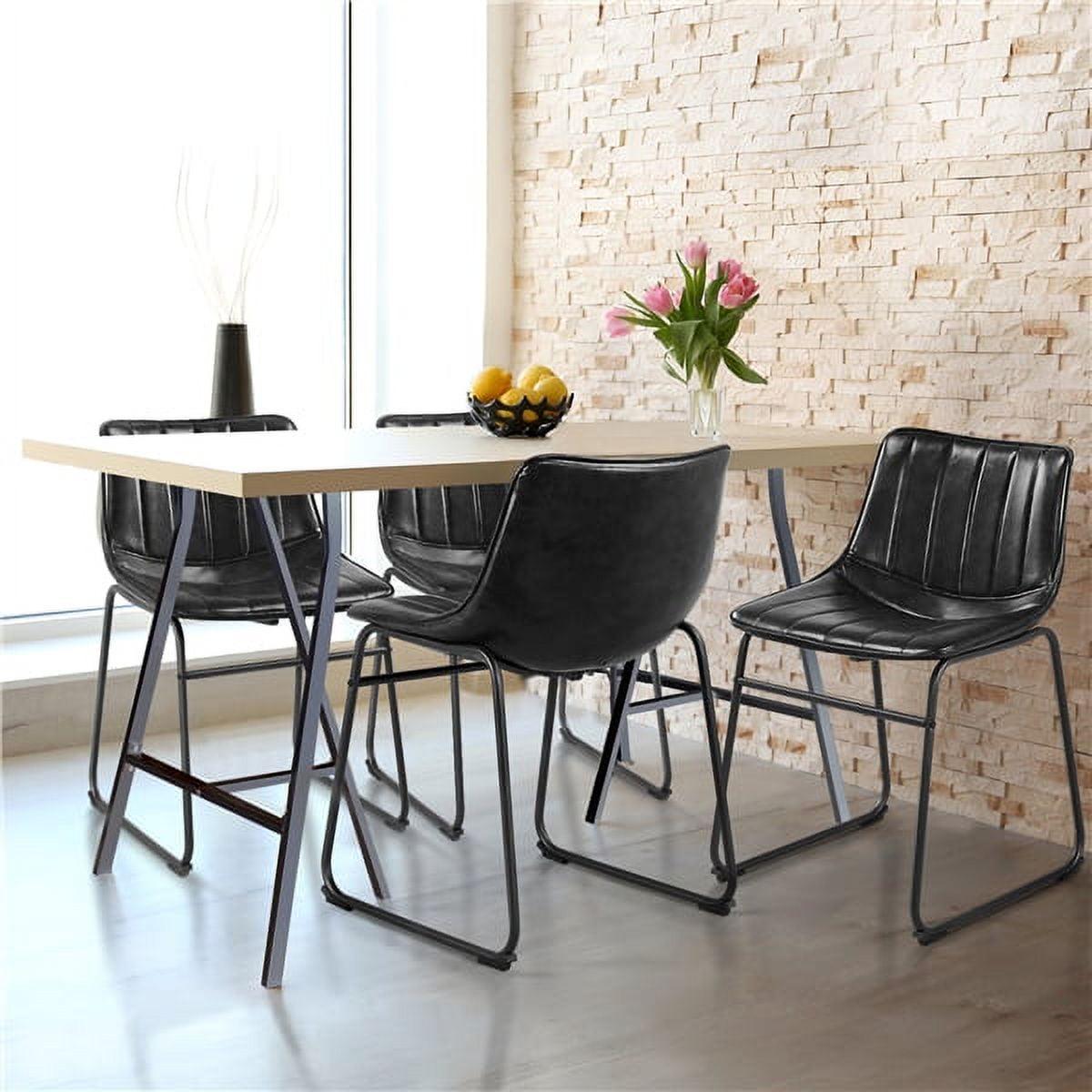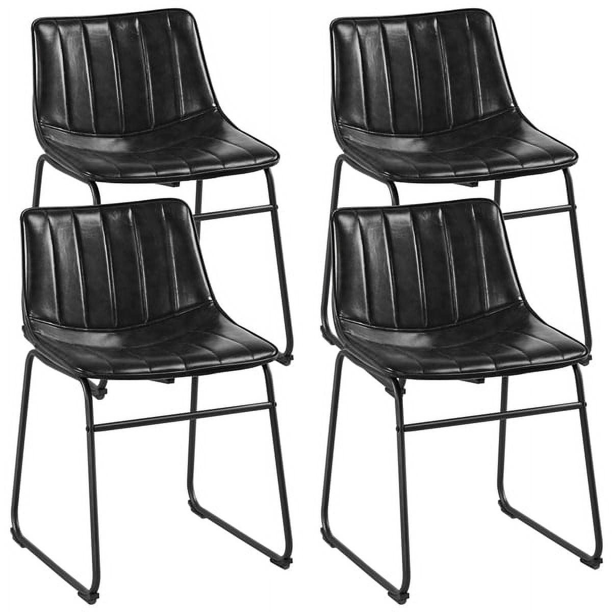 SMILE MART Industrial Dining Chairs Faux Leather Armless Chairs with Metal Legs and Upholstered Seat,Set of 4,Black