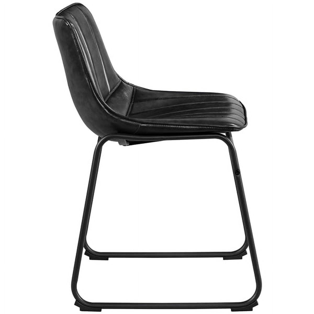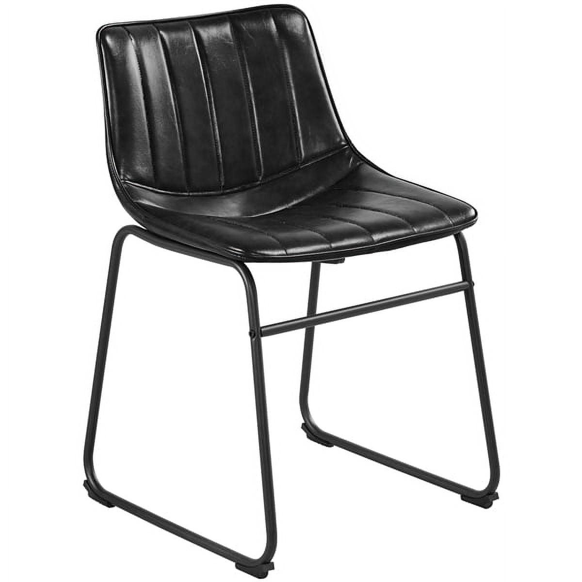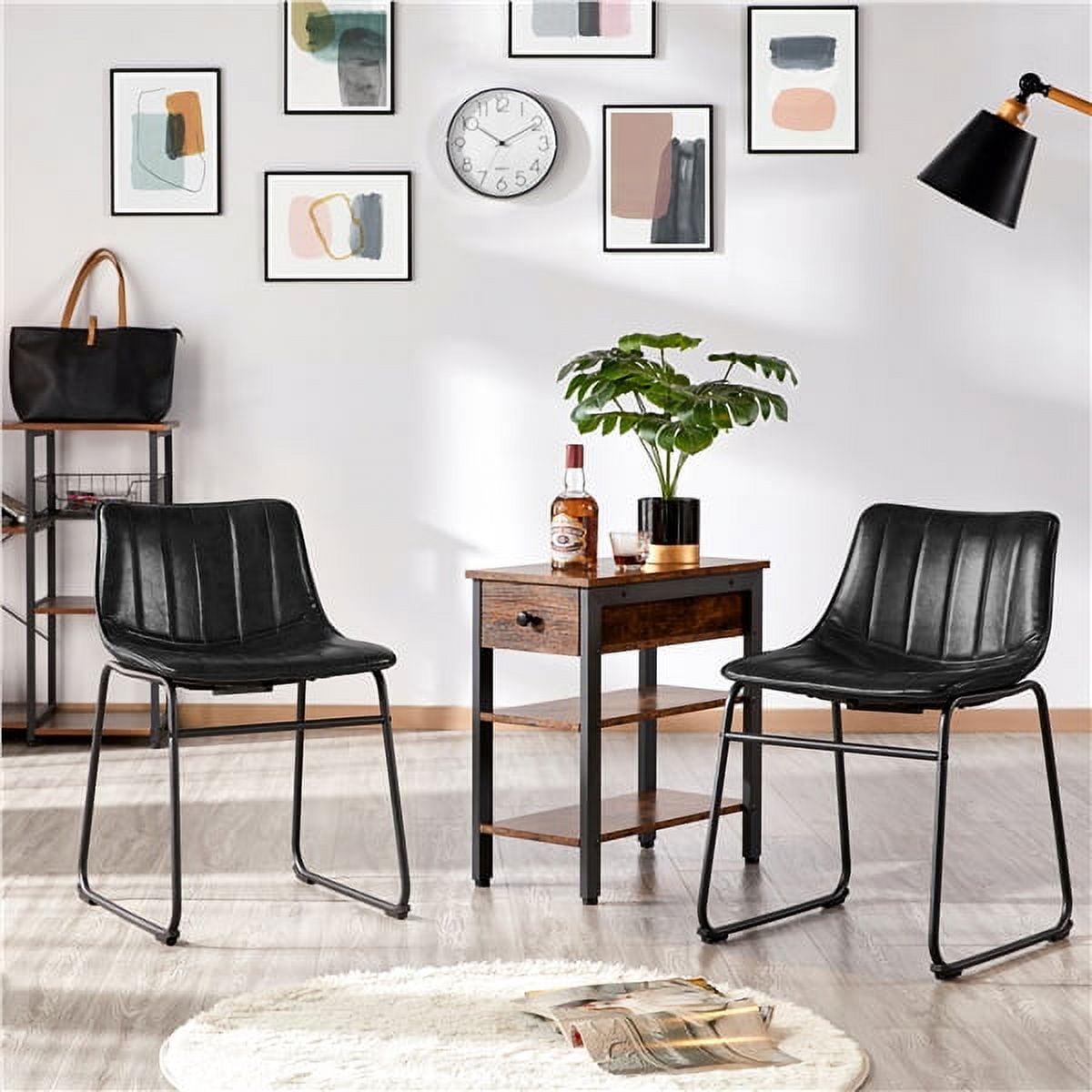 SMILE MART Industrial Dining Chairs Faux Leather Armless Chairs with Metal Legs and Upholstered Seat,Set of 4,Black