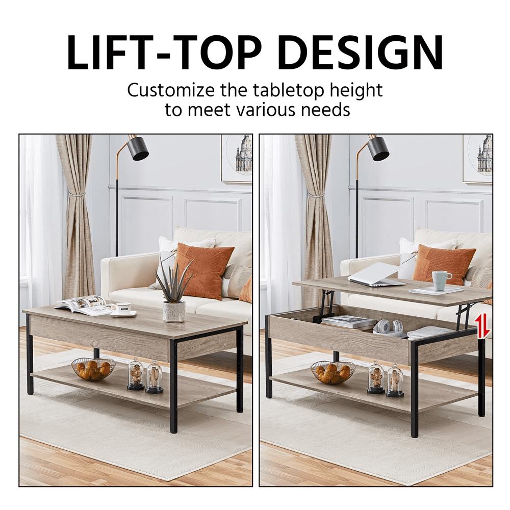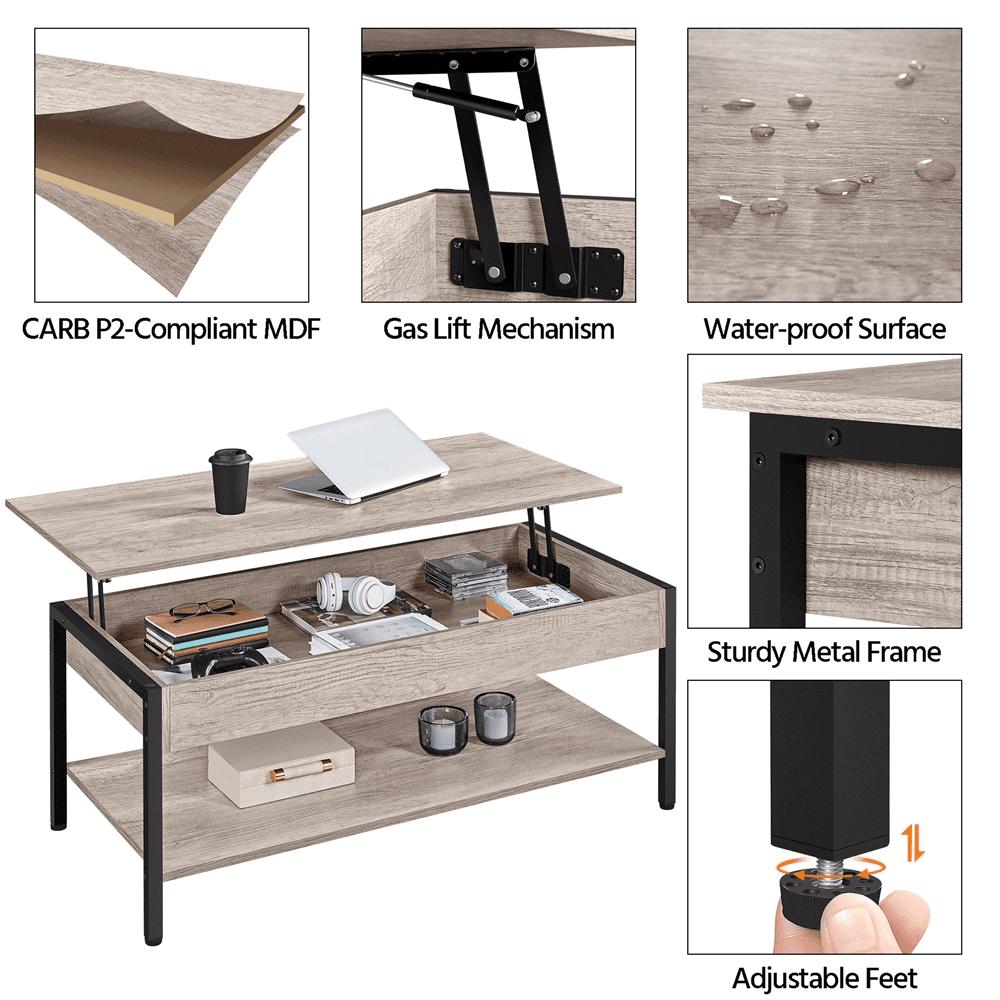 SMILE MART Industrial Lift Top Coffee Table with Hidden Compartment, Gray