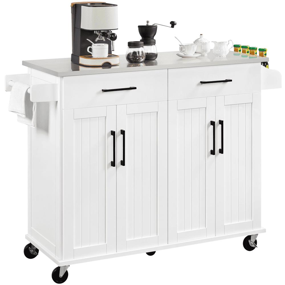 SmileMart Large Kitchen Island on Wheels with Storage Drawers & Cabinets, White