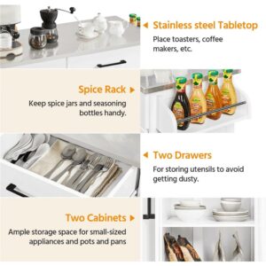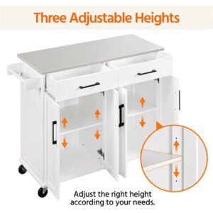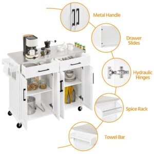 SMILE MART Large Kitchen Island on Wheels with Storage Drawers and Cabinets, White