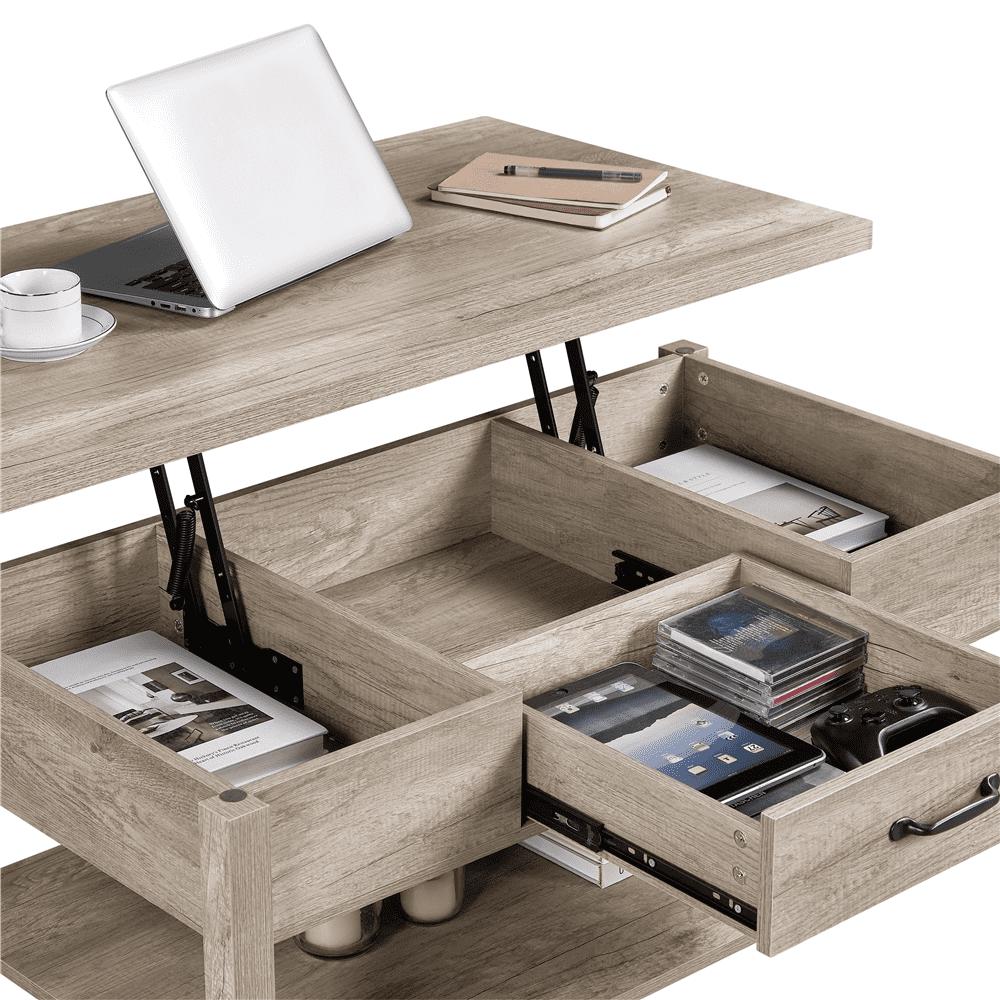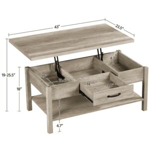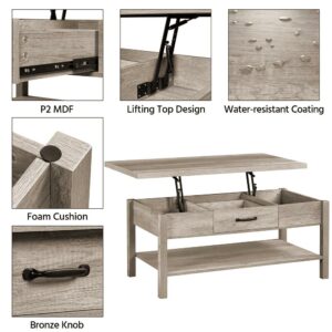 SMILE MART Lift Top Coffee Table with Hidden Compartments and Drawer for Living Room, Gray