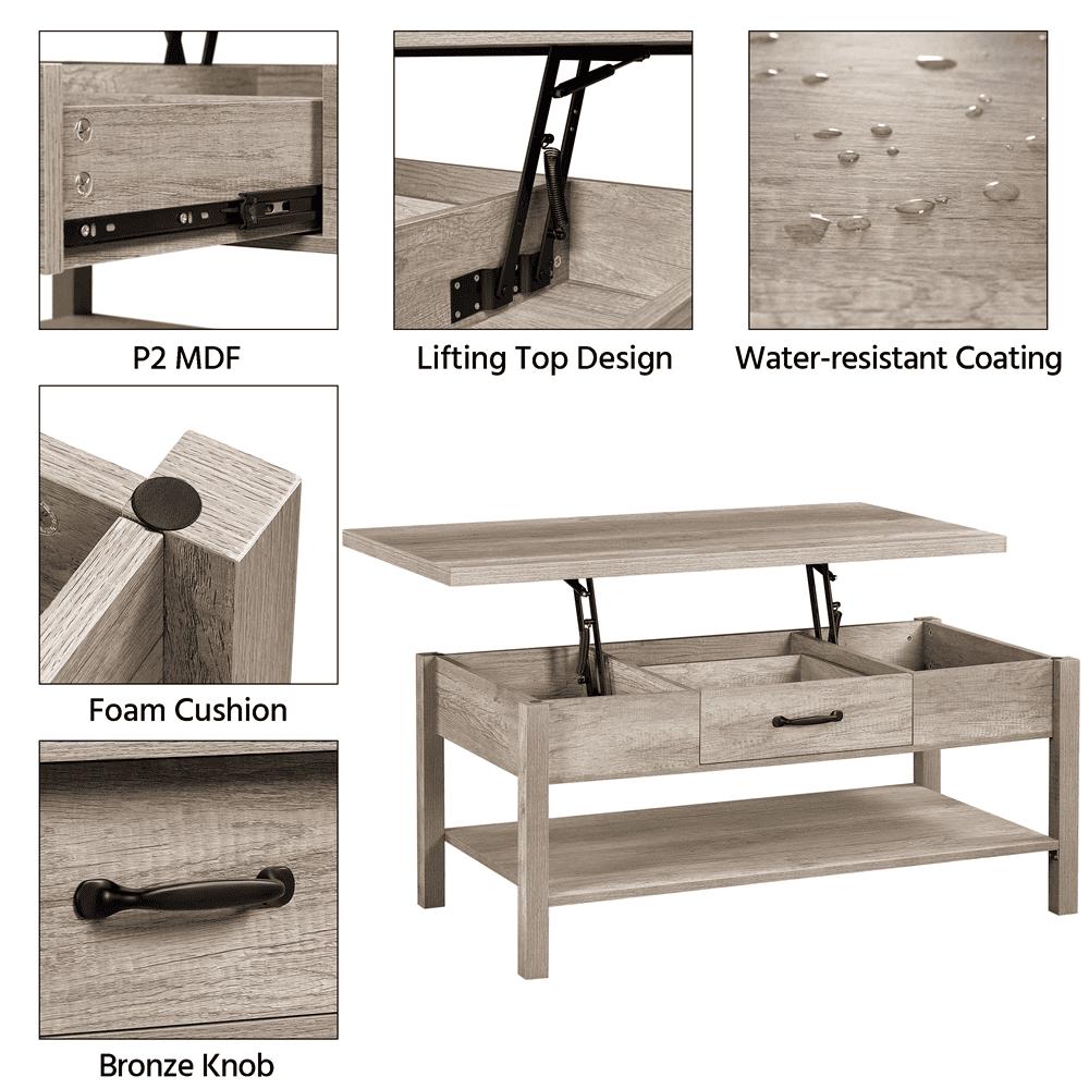 SmileMart Lift Top Coffee Table with Hidden Compartments & Drawer for Living Room, Gray