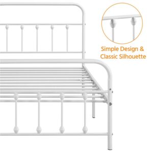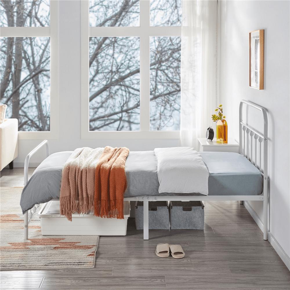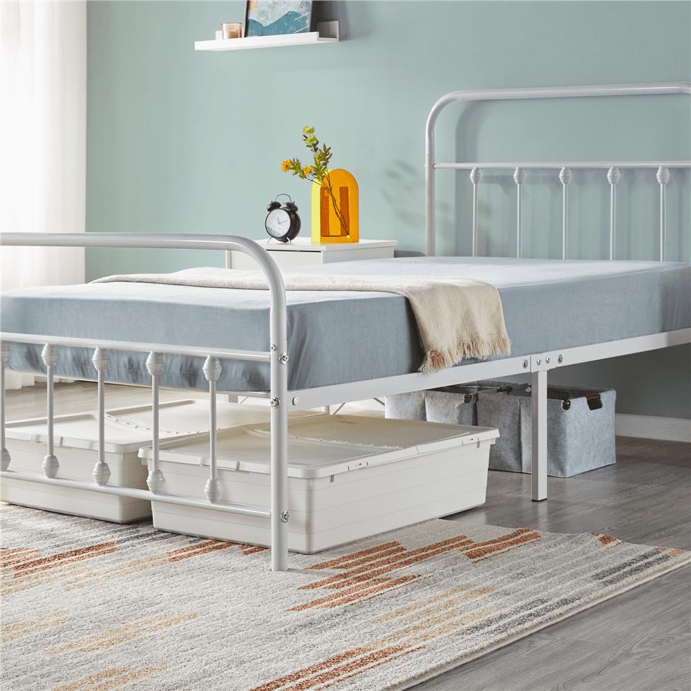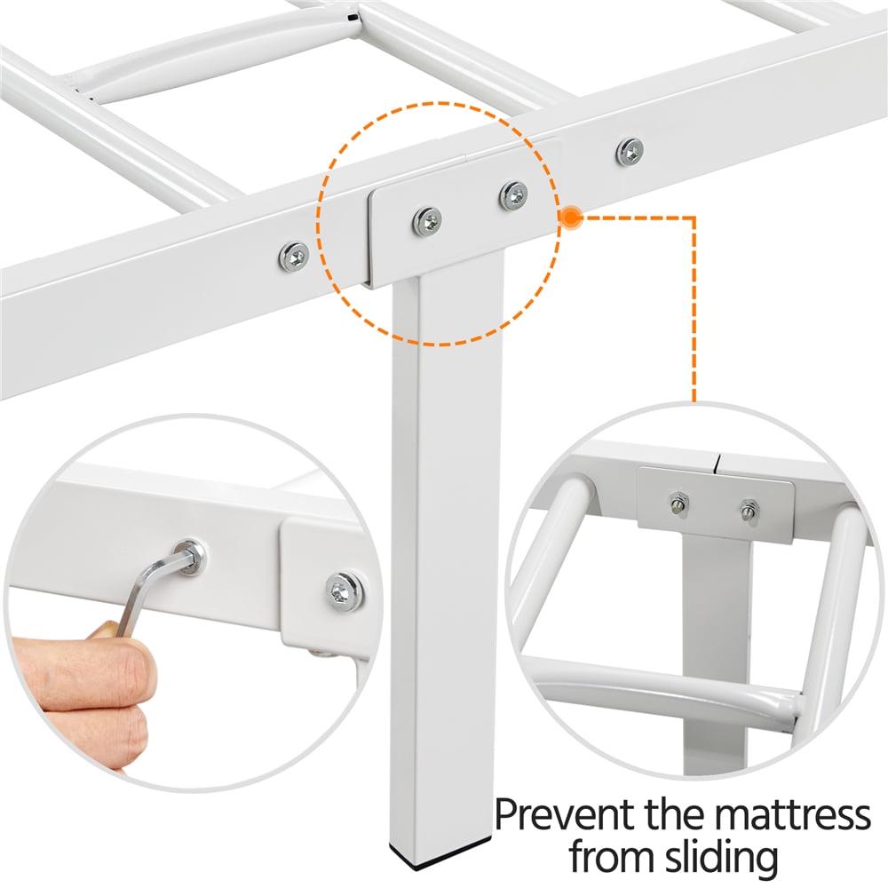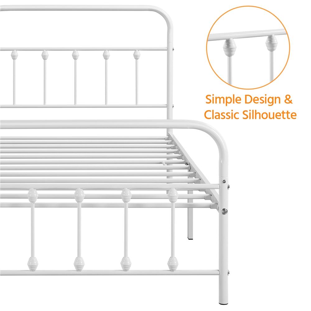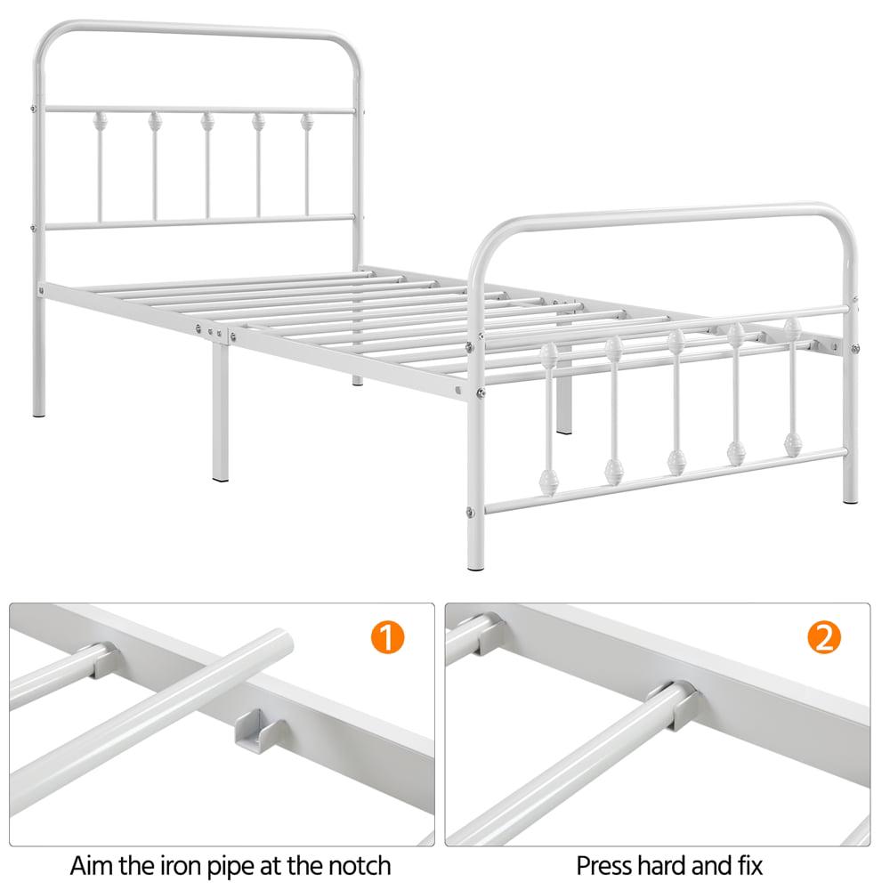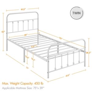 Smile Mart Metal Platform Twin Bed with High Headboard, White
