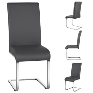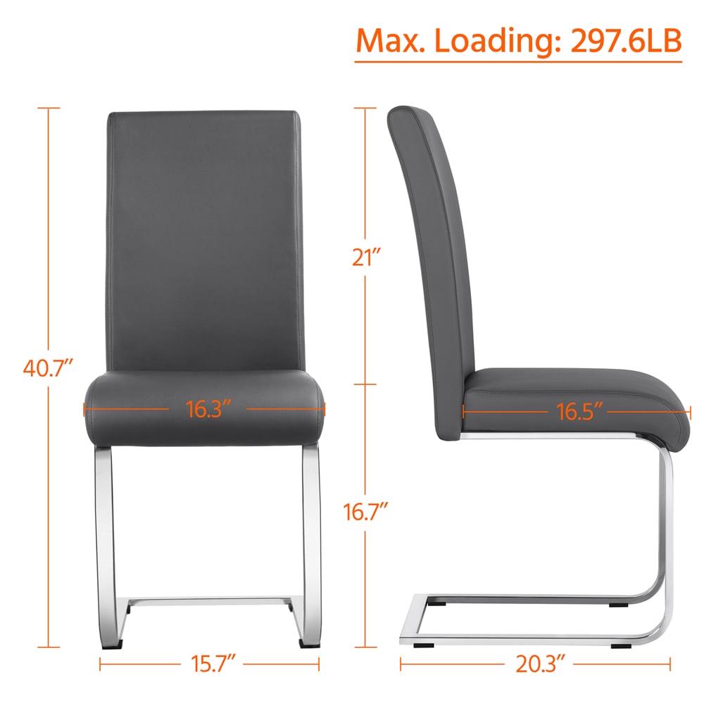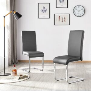 SmileMart Modern PU Leather Dining Chairs High-Back Metal Seat Kitchen Chairs,Set of 2,Gray: