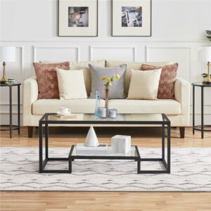 – Smile Mart Modern Glass Coffee Table with Metal Frame, Black:
