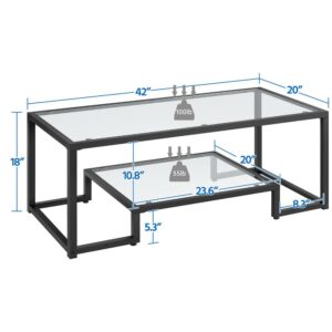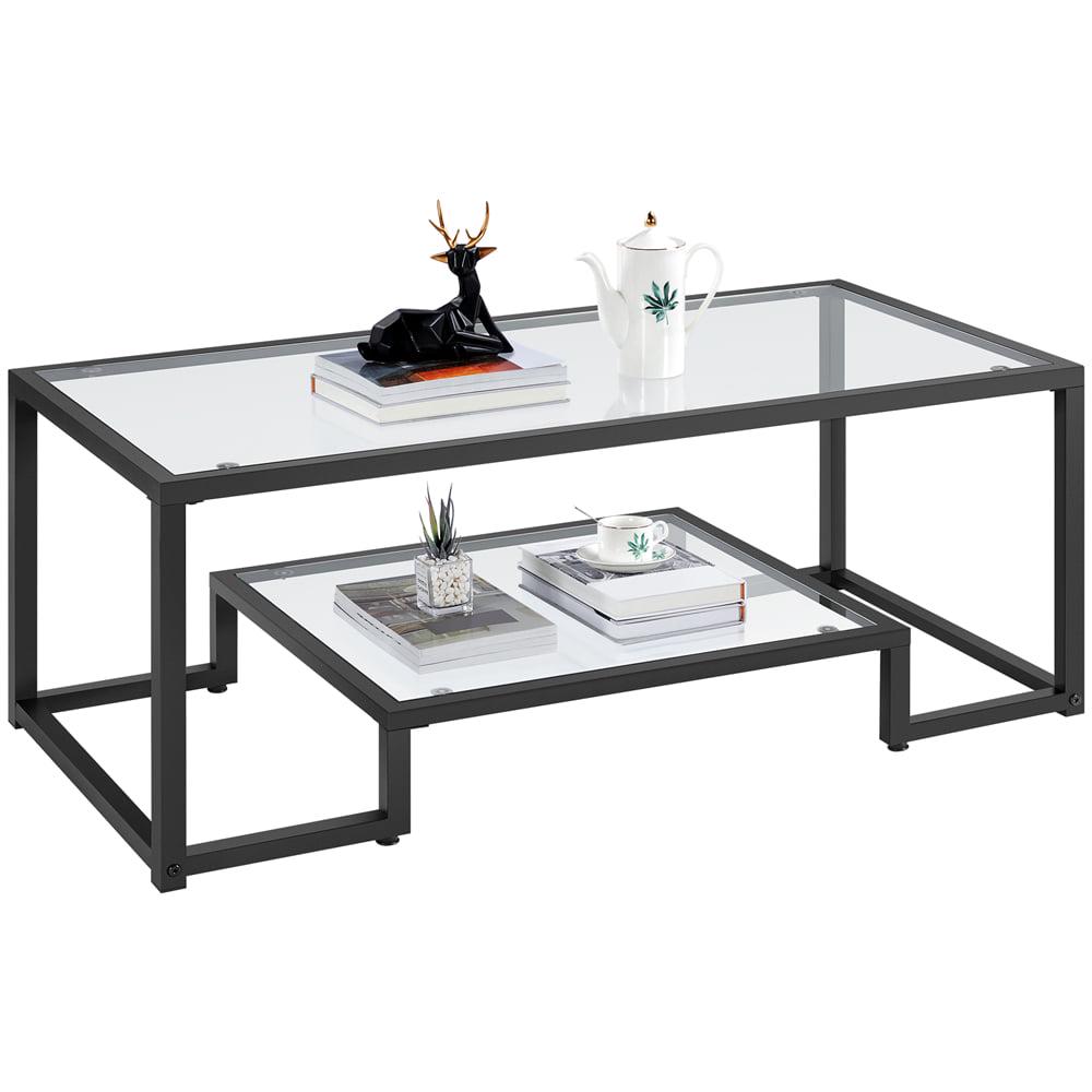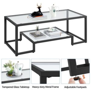 Smile Mart Modern Glass Coffee Table with Metal Frame, Black