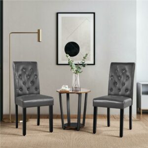 SmileMart 2pcs Tufted Padded Parson Dining Chair with Solid Wood Legs, Gray: