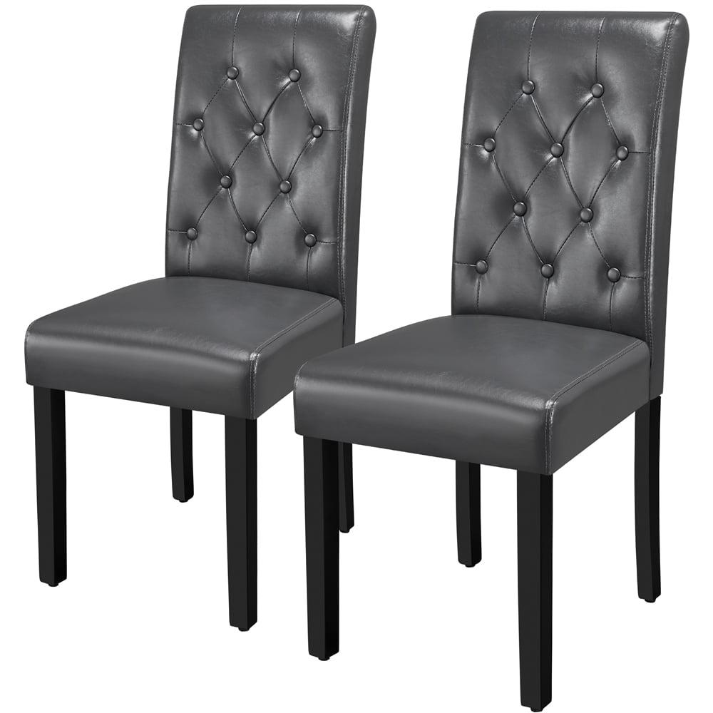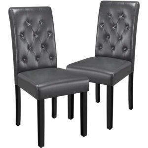 SMILE MART Modern Tufted Padded Dining Chair with Tall Back, Set of 2, Gray