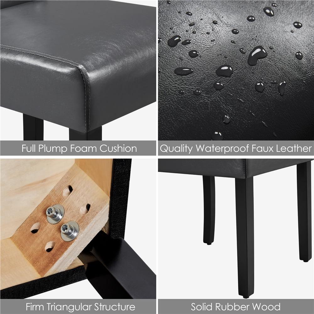 This set of dining chairs is constructed of strong wooden frame with high quality rubber wood legs, elastic soft foam, durable and waterproof PVC leather. Filled with more high-density foam in the seats and backrests will not let you feel tired after long-time sitting. The front legs are designed with adjustable feet caps to keep the chairs height balance. Modern and clean style will correspond with any space you intend it for, lobbies, meetings, hotels, restaurants, banquets and more.
