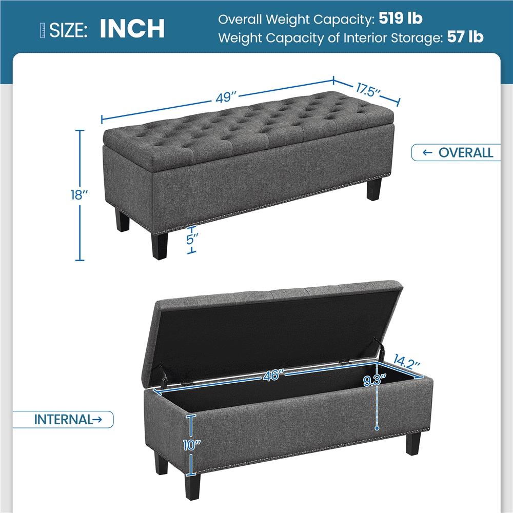 - SMILE MART Modern Tufted Storage Bench for Entryway Bedroom, Dark Gray