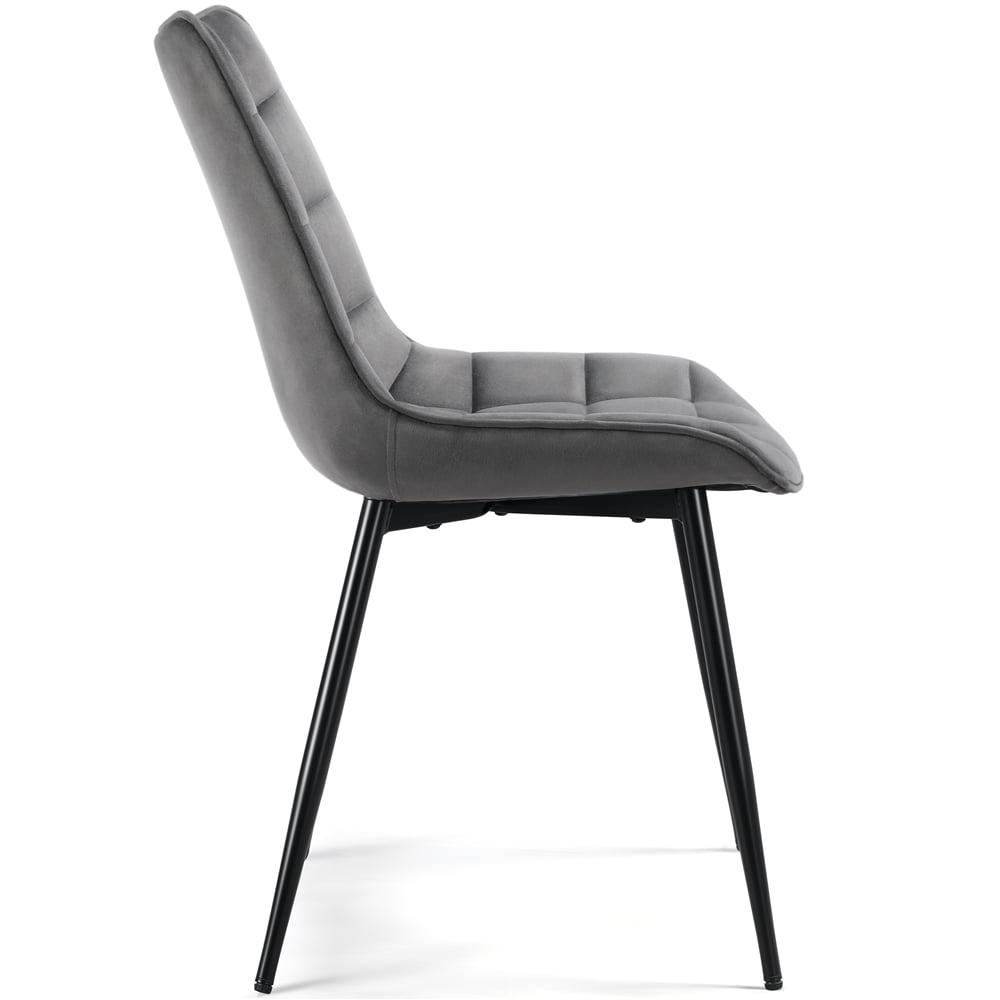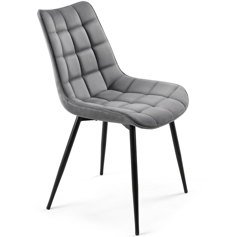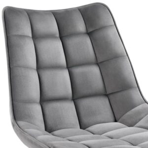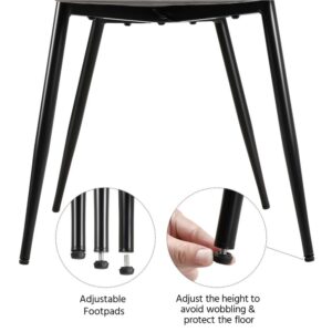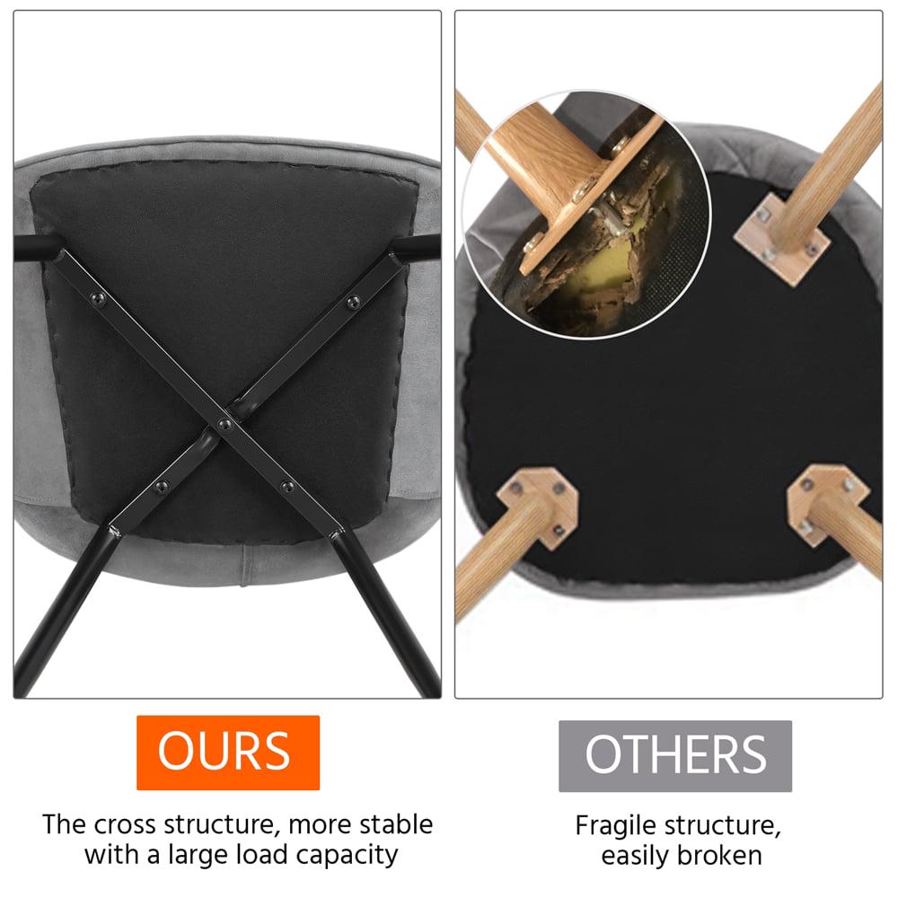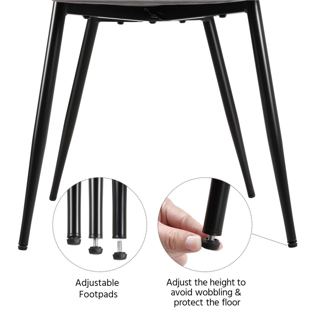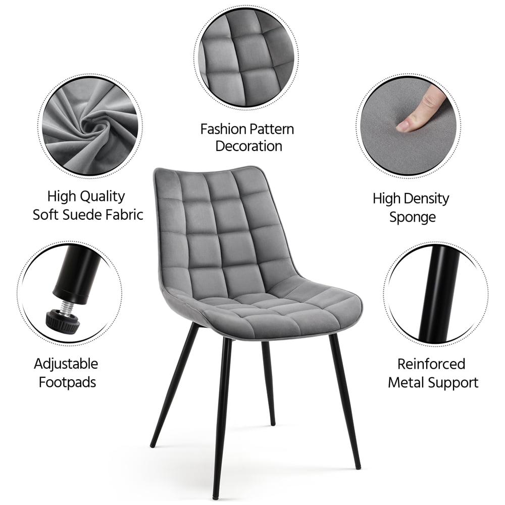 The legs of the modern dining chairs are iron with matte painting. They are durable, sturdy, and solid. For your safety, please do not stand on the chairs. The modern dining chairs come in 2 pieces. They perfectly match any style of furniture, with an end table, a coffee table, or a dining table. The 2 Gray dining side chairs go well with your coffee table in the living room or with the dining table in the kitchen. You can also put these dining chairs beside the counter or on the balcony. The side chairs are modern style. The surface is designed with square patterns for extra beauty and comfort. The proper curve of the dining chair makes you feel cozy and relaxed.