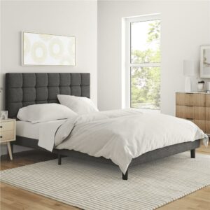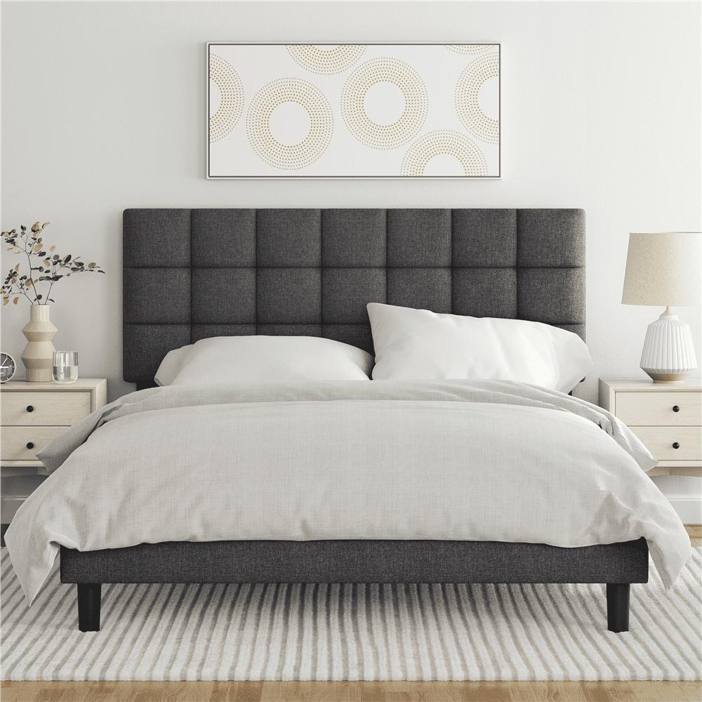 Smile Mart Upholstered Tufted Platform Queen Bed, Dark Gray