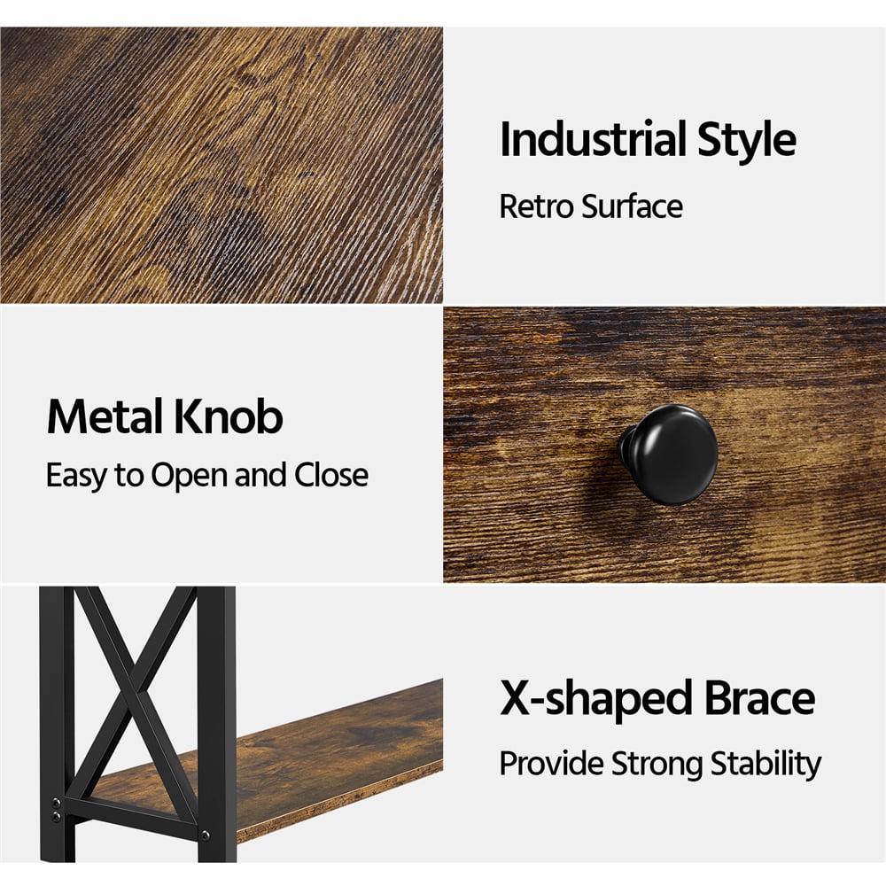 Made of high-quality MDF and iron, this console table is born for long service. It comes with a large drawer and 2 storage shelves, ample enough to store items orderly. This console sofa entryway table is of classic industrial design, which can well match different decor styles and highlight your taste. Its proper size makes it perfect for the living room, bedroom, study, kitchen, and hallways to serve as a sofa table or storage shelf.