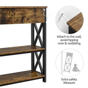 – SmileMart Wooden Console Table Entryway Table with Drawer Shelves for Home Living Room,Rustic Brown: