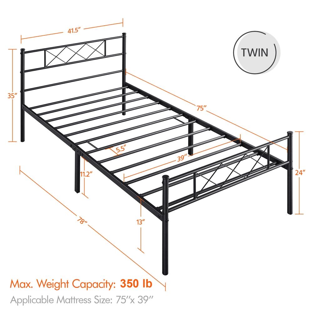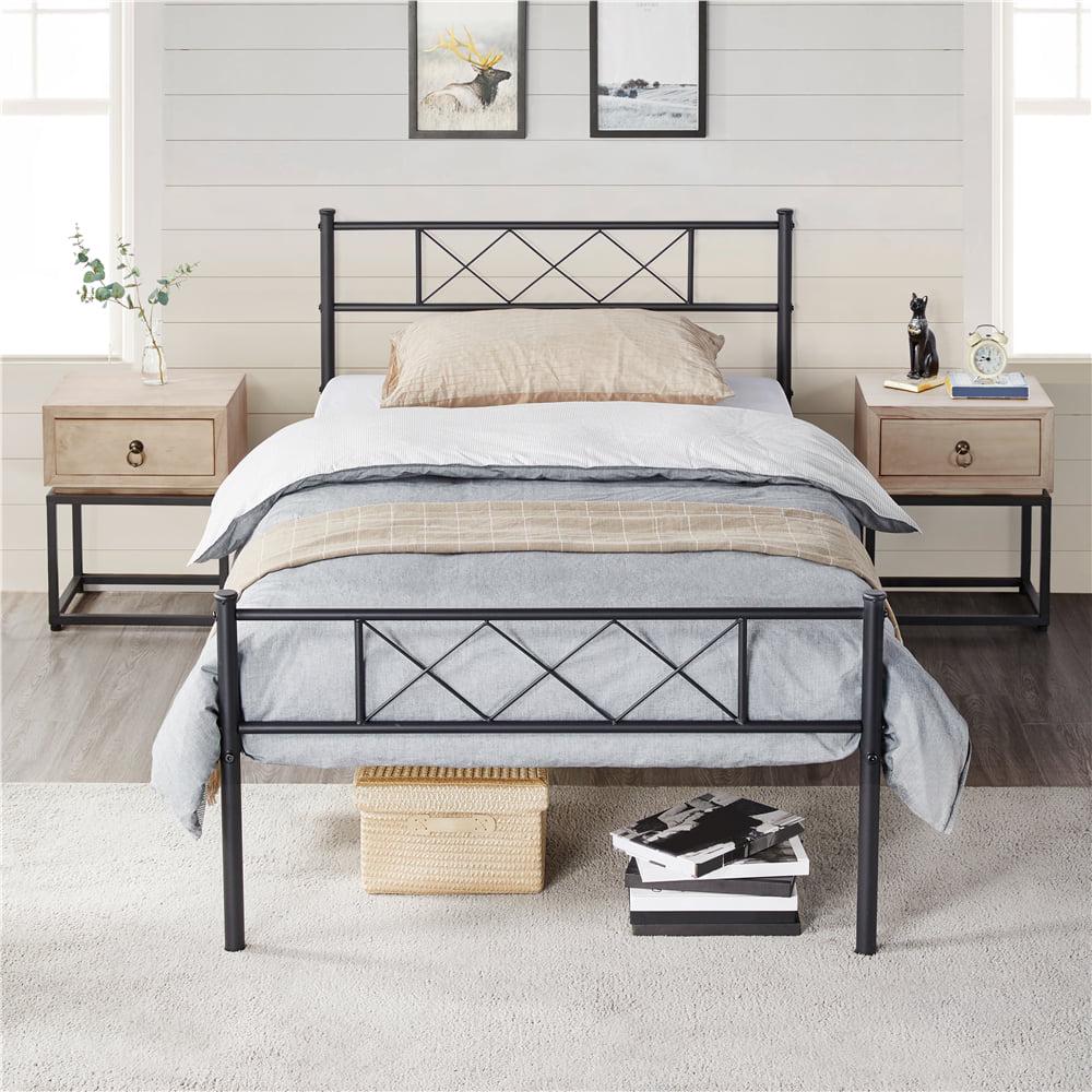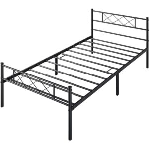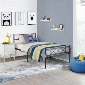 – SmileMart X-Design Headboard & Footboard Metal Twin Bed, Black :