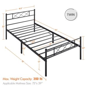SMILE MART X-Design Headboard and Footboard Metal Twin Bed, Black