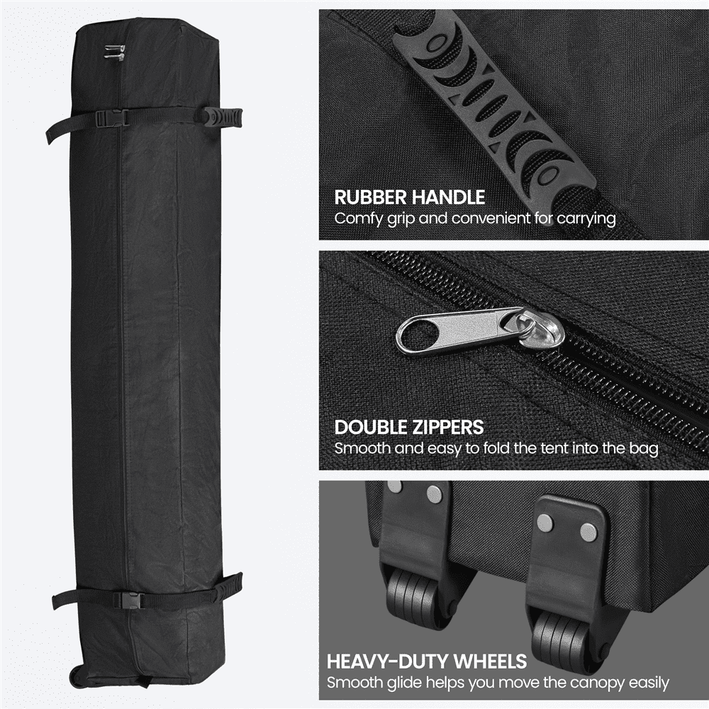 - Rolling Storage Bag: 10″ L × 8″ W × 45.3″ H