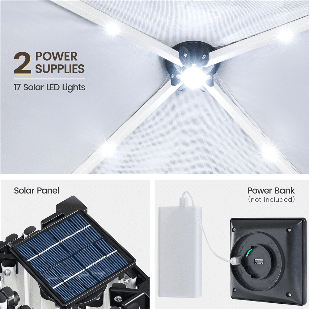 - SmileMart 10 × 10 ft Portable Pop-Up Canopy Tent with 17 Solar LED Lights for Home & Commercial Use, White