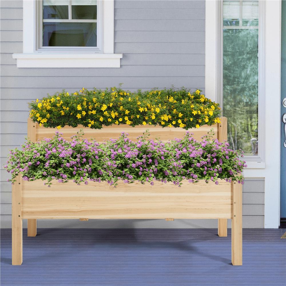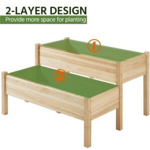 SmileMart 2-tier Wooden Elevated Raised Garden Bed for Garden Yard Indoor Outdoor