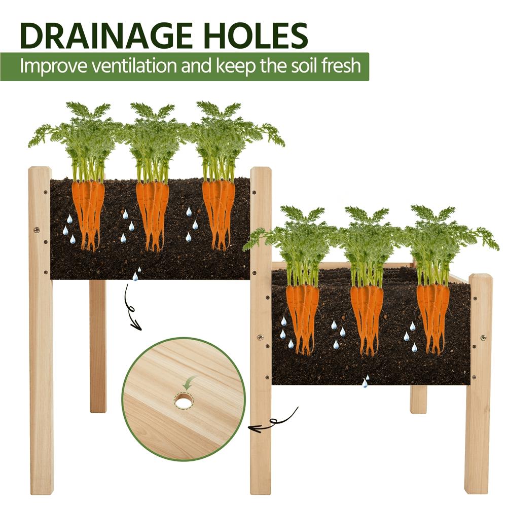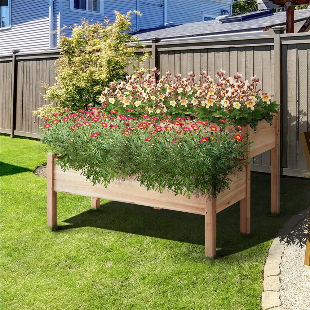 What if I want to grow both flowers and herbs Here comes a practical gardening helper, a 2-tier raised wooden planting bed. This bunk-bed-design planting box is made of natural fir wood and each bed has a strong weight capacity of 100kg/220lb. Divided into two parts, you can use this elevated planting bed for flowers, vegetables, and herbs together! Thanks to its ergonomic design, you won t need to bend down for a long time in the garden, just stand up and manage your lovely plants happily. What are you waiting for Enjoy gardening with our 2-tier raised planting bed now!