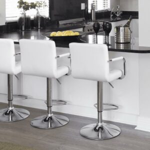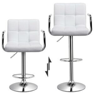 – SmileMart 2pcs Adjustable Swivel Bar Stools PU Leather Counter Stools,White: