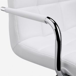 Our adjustable office chair is made of PU leather, foam, chromium-plated steel and plywood. The height can be adjusted from 34.5-42”, a very standard and scientific height as such kind of chair, the seat can rotate 360° and the weight capacity reaches 125 kg/276 lb, which is very convenient for you to turn around without standing up and can meets all your needs in various situations.