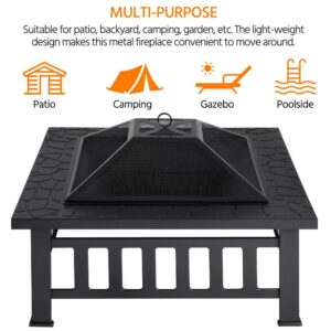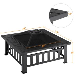 SmileMart 34” Metal Square Fire Pit Stove Brazier for Graden with Cover and Poker, Black