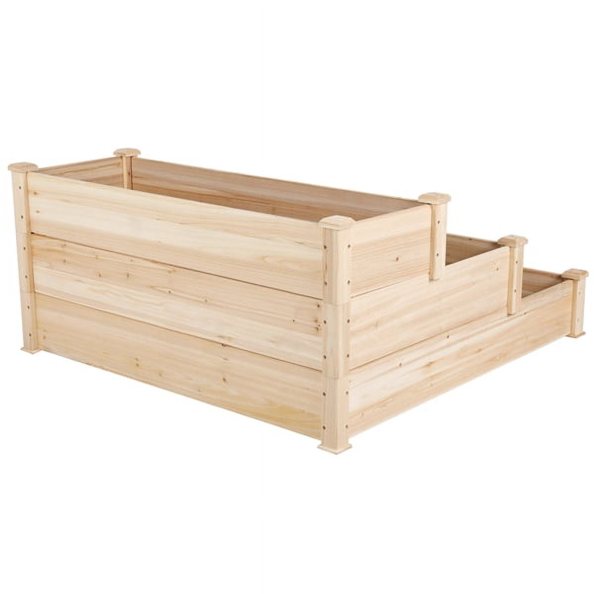 Our raised garden bed is made with non-toxic fir wood and sanded to prevent any undesired injuries caused by wood splinters. The elevated planter provides three growing areas for different plants or planting methods. Each tier is connected with wood plugs, allowing you to transform it into three separate growing beds. With this helpful planter, you can cultivate plants like vegetables, flowers and herbs on your patio, garden, greenhouse or balcony. Decorative end caps on the corner posts to add a rustic look to your garden.
