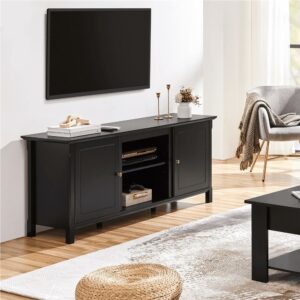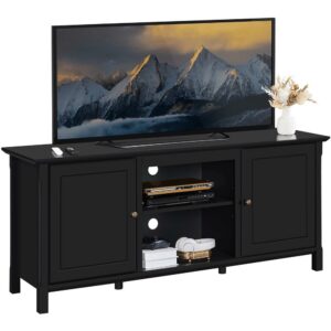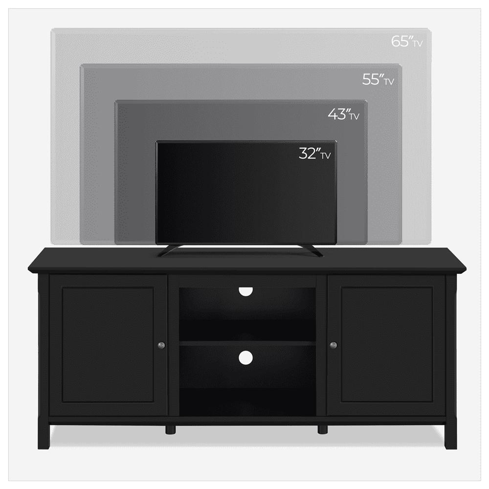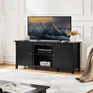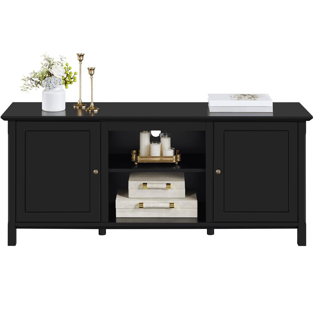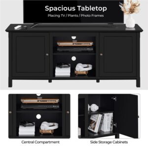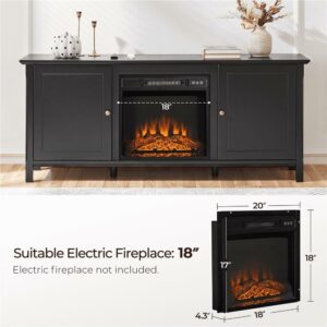 SmileMart 58in Modern Wooden TV Stand for TVs up to 65in and 18in Electric Fireplace Storage, Black