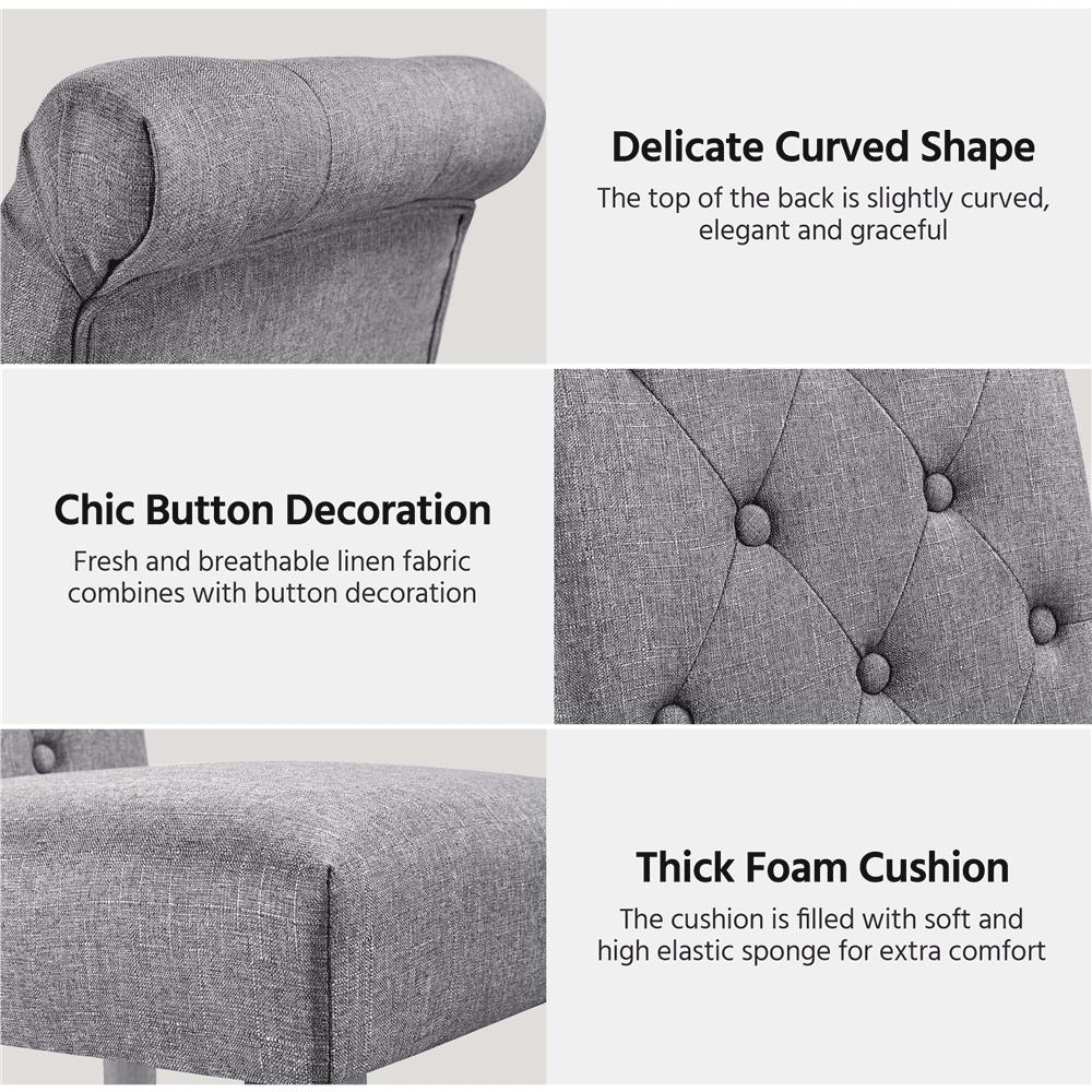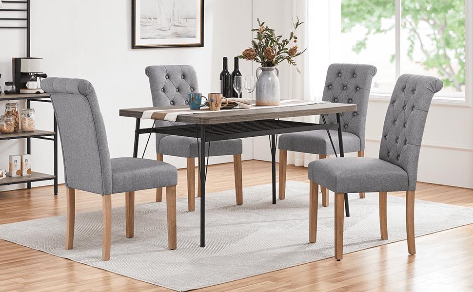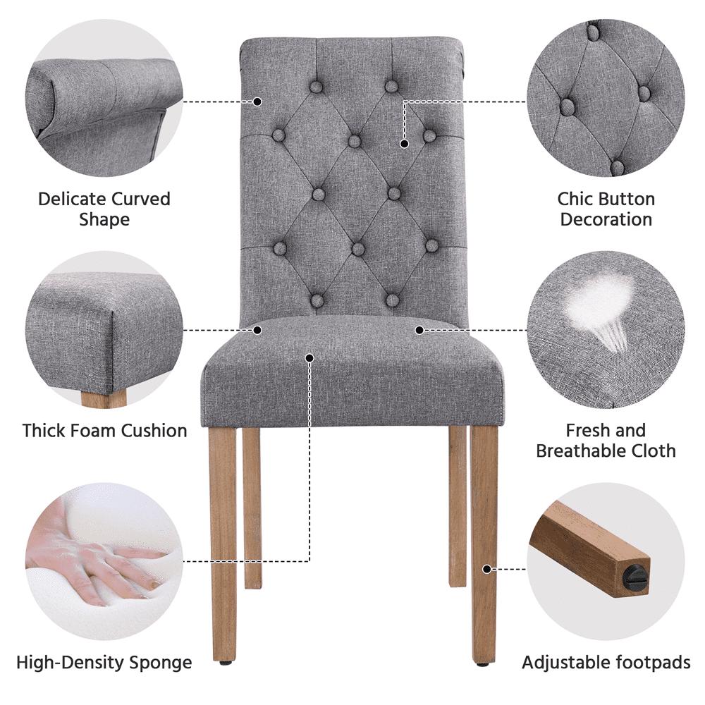 The upholstered dining chair is built to last, made of linen-look fabric stretched on a durable solid wood frame with thick cushion. The dining chair looks very fashionable, which can match any decor theme, perfect for home, restaurant, café and company. The seat and back are padded with high-density foam for great comfortable feeling and the overall wooden frame gives you strong support.