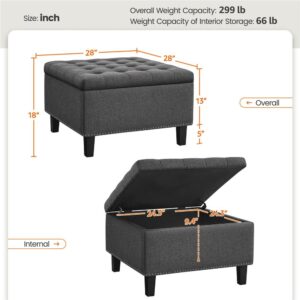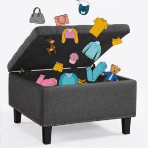 SmileMart Modern linen-like Storage Ottoman Bench Footrest with Button-Tufted for Entryway, Dark Gray