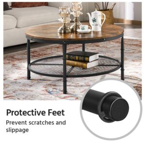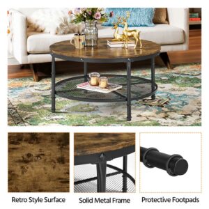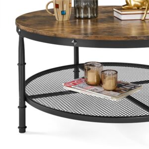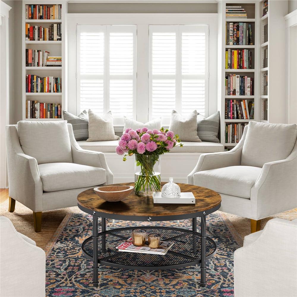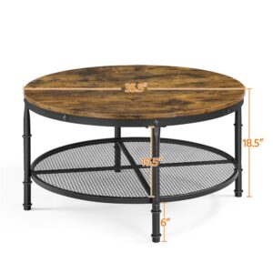 Smilemart Modern Round Metal Coffee Table with Storage Shelf, Rustic Brown