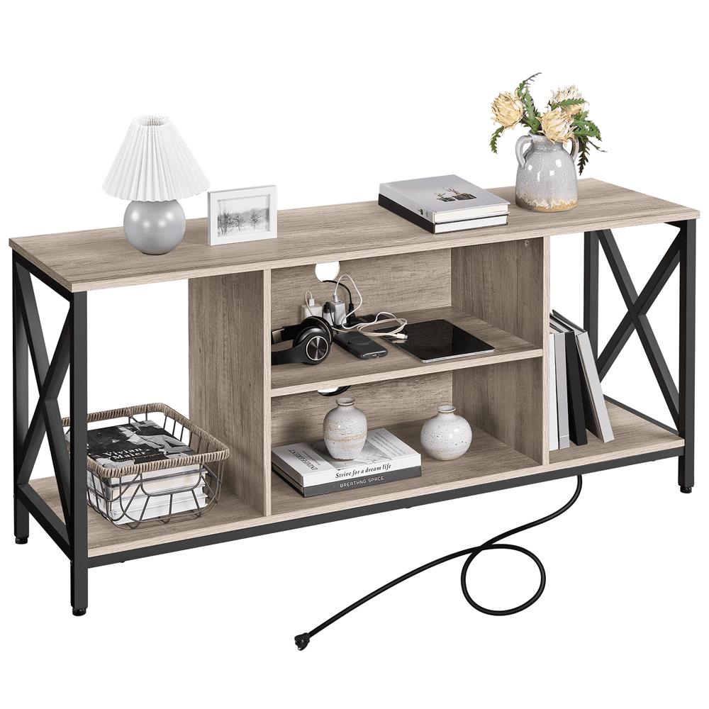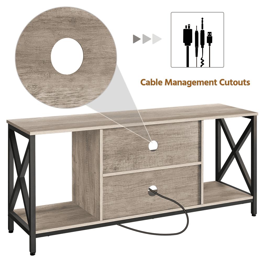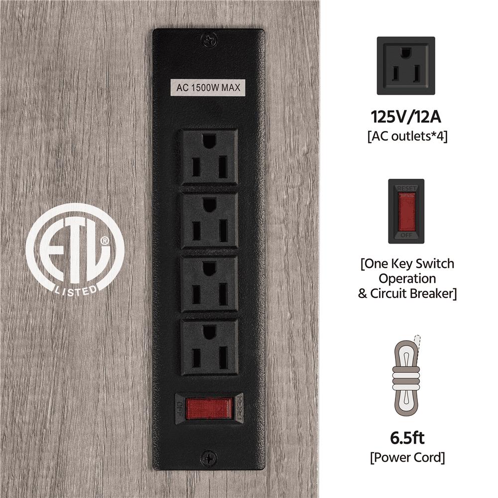 Home, as everyone s peaceful harbor, shall be restful and trouble-free. We are dedicated to providing well-designed supplies to help you create your space into a lovely nest! This enhanced TV stand integrates practical functions, tasteful elements, and problem solutions! Suitable for TV up to 60in and within 110 lb, this vintage TV console comprises a 2- layer central shelf and 2 side compartments under the top to accommodate items like books, magazines, decorations, frames, or other equipment. The middle shelf provides a 1500w 4-AC power outlet with a switch and 2m long cable, saving you from the head-scratching trouble of socket shortage or cable-not-long-enough.