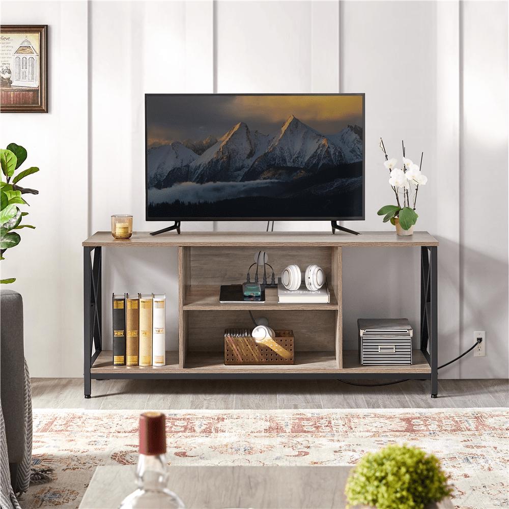 SmileMart Modern TV Stand for 60-Inch TV with with 4-AC Power Outlet, Gray