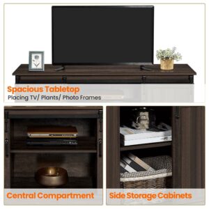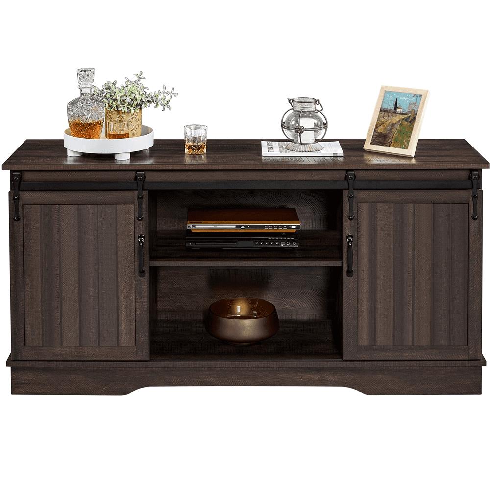 SmileMart Modern TV Stand with Storage Shelves for TVs up to 65 Inch, Rustic Brown