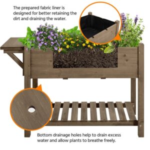 SmileMart Solid Wood Elevated Garden Bed with Fabric Inner Liner and Removable Grow Grids, Brown