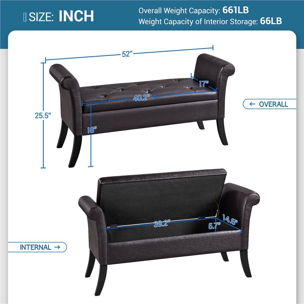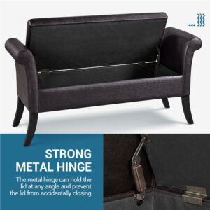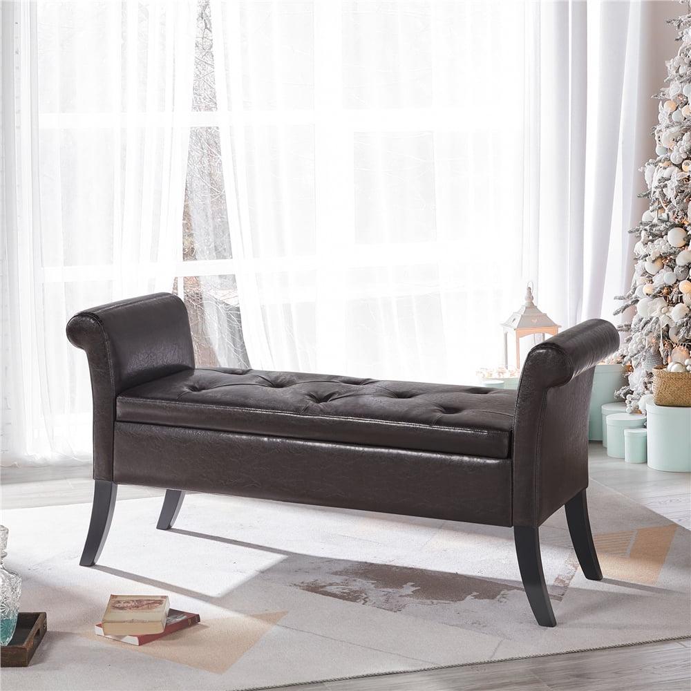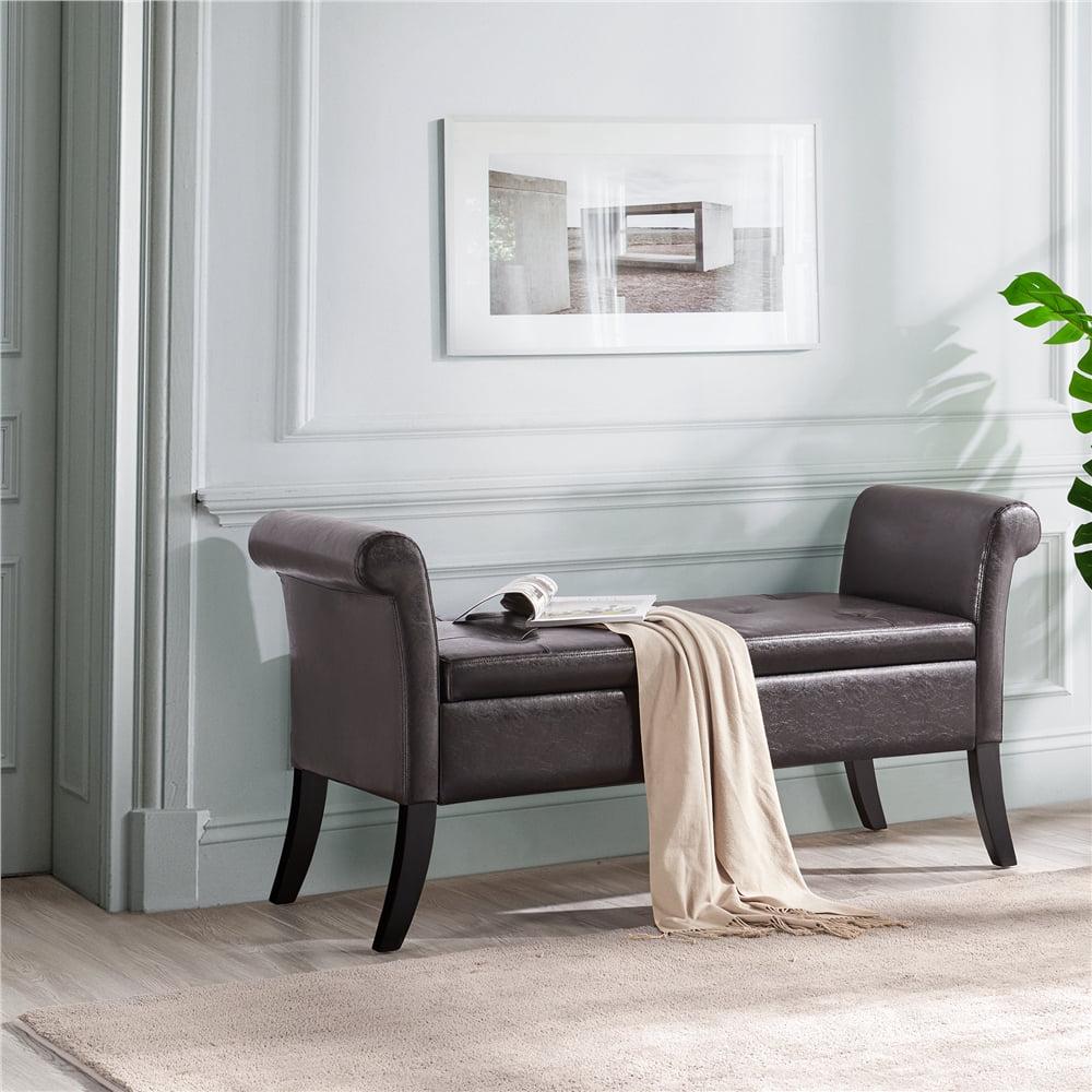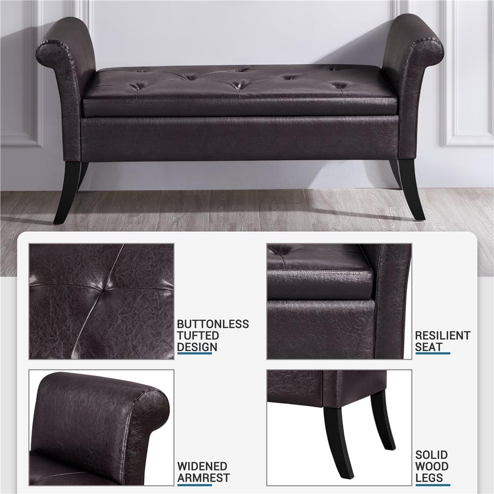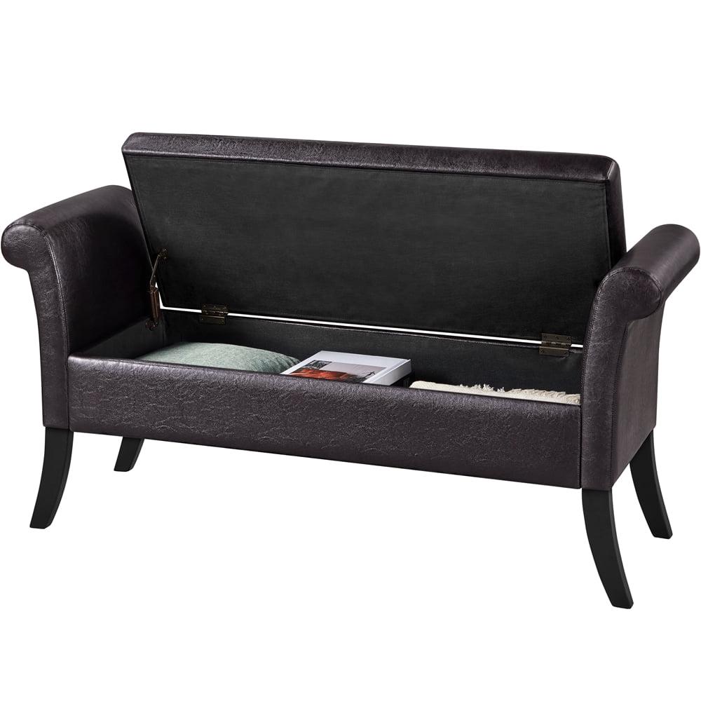 – SmileMart Faux Leather Upholstered Vintage Storage Bench with Arms, Dark Brown: