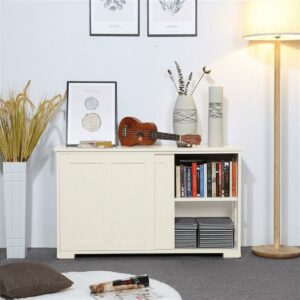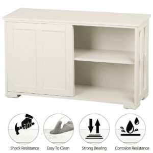 SmileMart Wooden Buffet Storage Cabinet with Sliding Door and 2-Shelves, Antique White