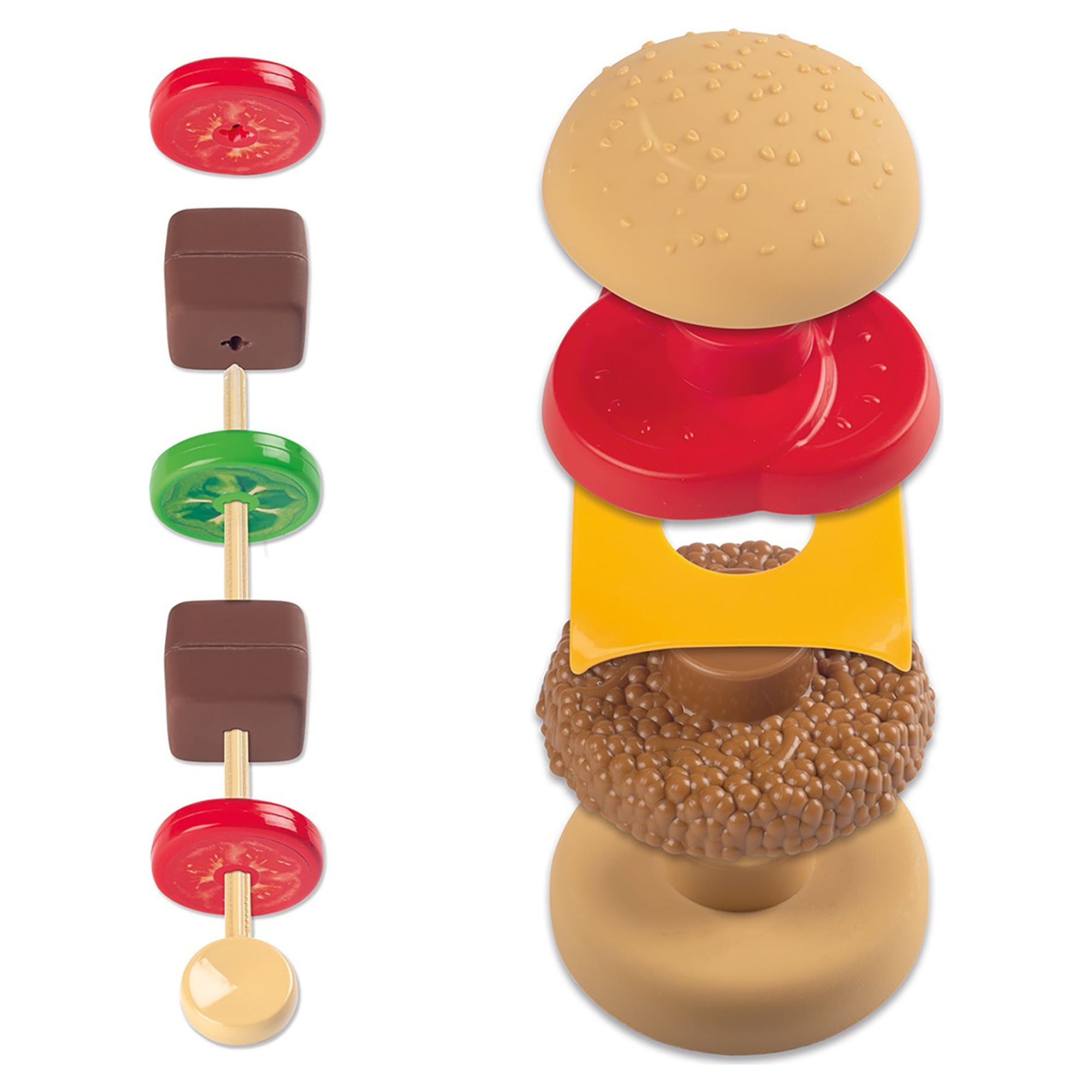 TRENDY DESIGN: Looks just like a modern grill with a grill side and a griddle side for additional play options. INCLUDES 18-PIECE ACCESSORY SET: Features play burgers, dogs, kebobs, toppings, plates, and grilling tools. WHEELS FOR EASY TRANSPORT: Kids can grill indoors or take the set outside and grill just like Mom and Dad. INTERACTIVE FEATURES: Turn the button and see flames appear. Knobs and accessories with realistic clicking sounds.
