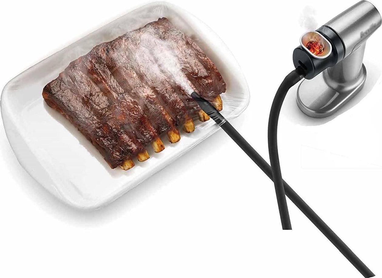 Smoking Gun food smoker quickly adds natural cold smoke flavor and aroma to meat, fish, vegetables, sauces, and cocktails without using heat