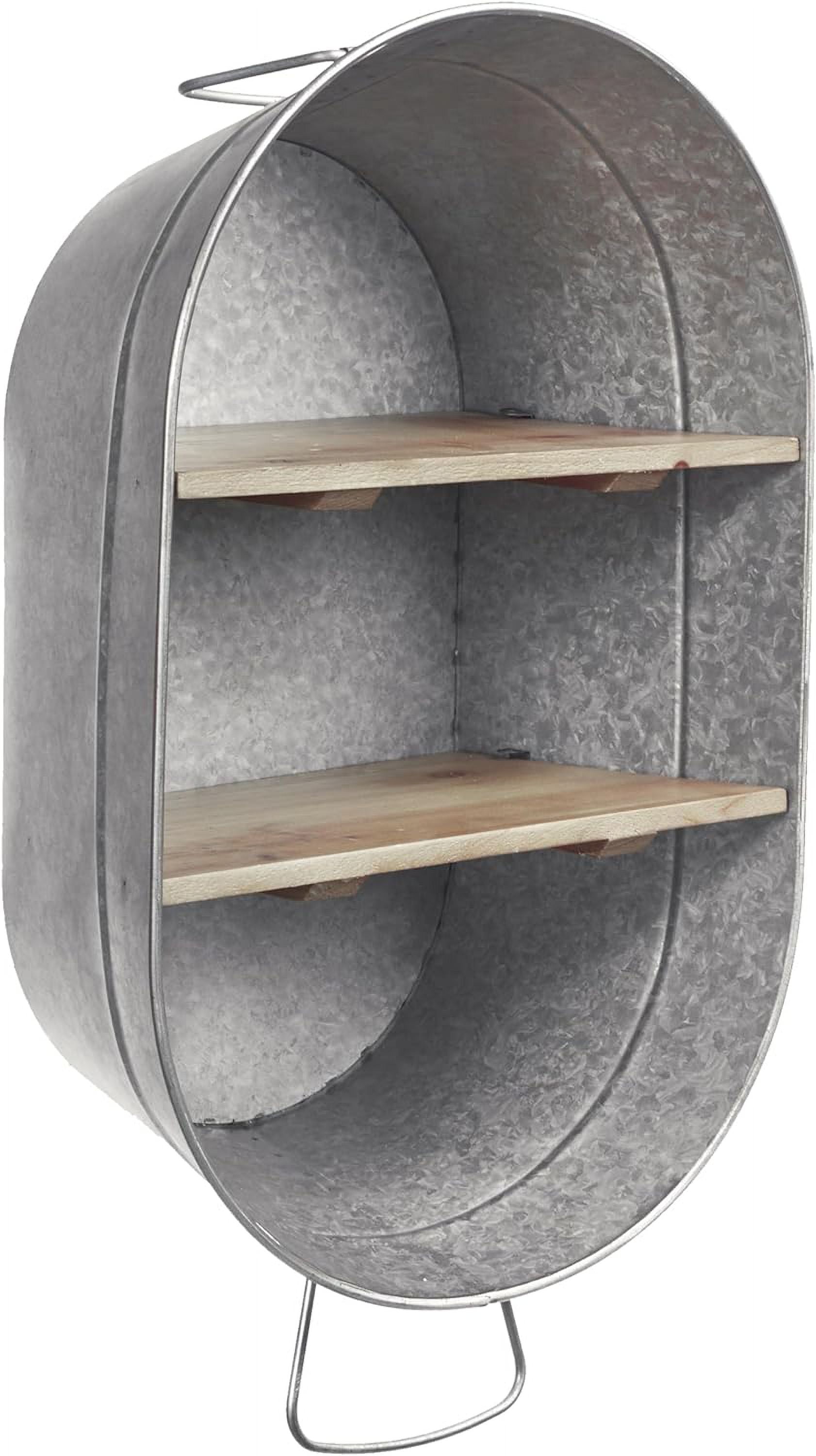 SOFE Galvanized Oval Washtub Wall Mounted 2-Tier Floating Shelf, Metal Bathroom and Laundry Wall Decor