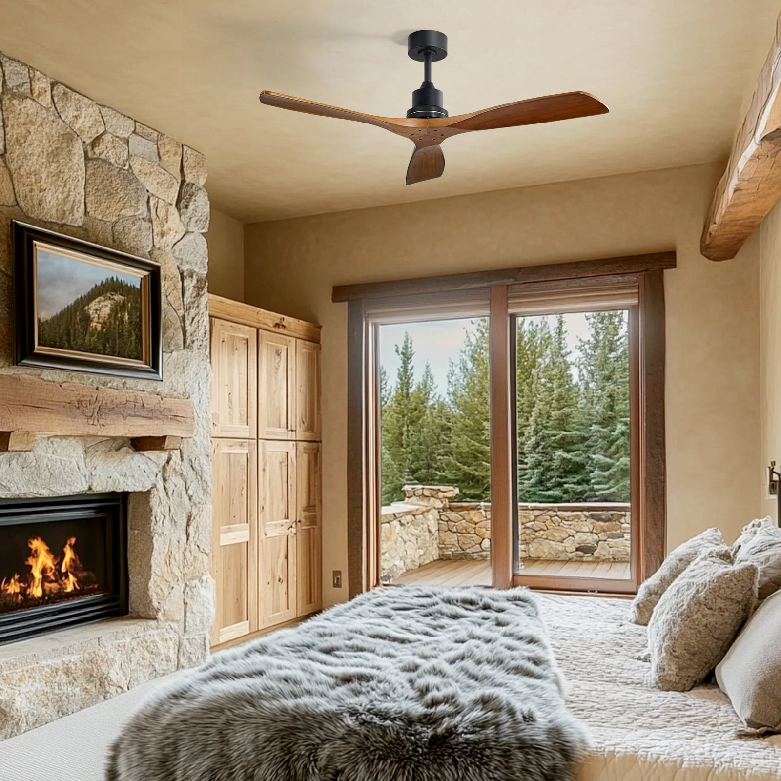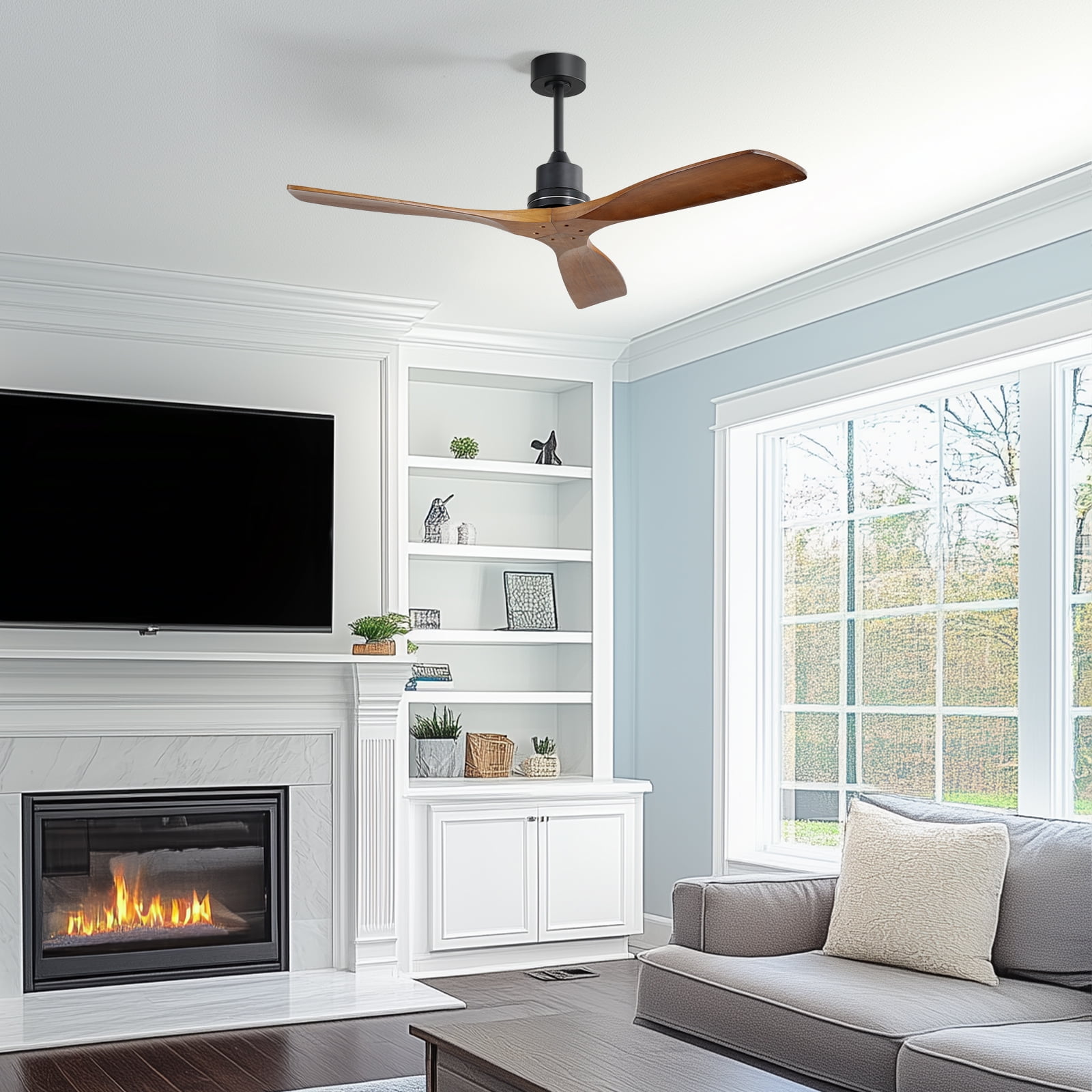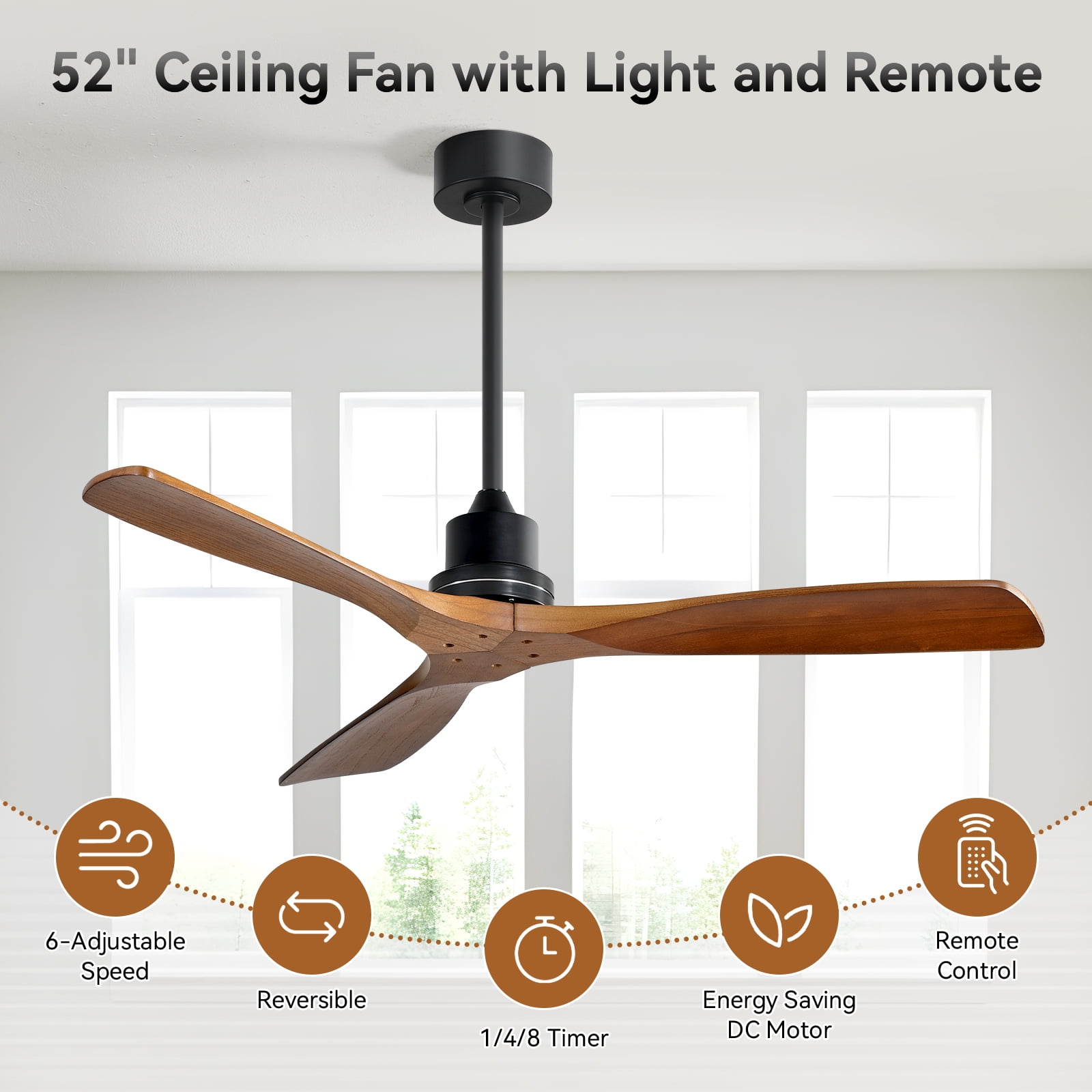 Sofucor 52″ Modern Wood Ceiling Fan with Remote, Walnut Finish, 3 Blades, Indoor/Outdoor for Bedroom, Patio