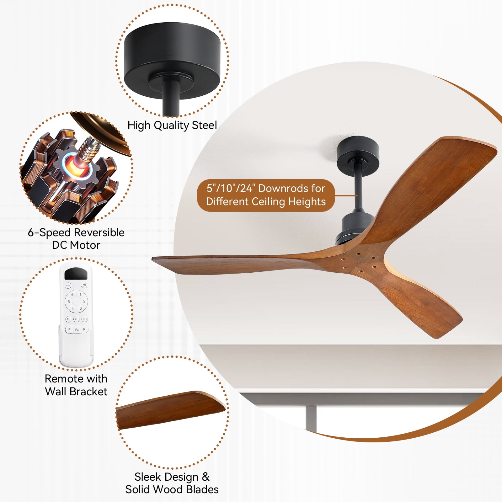 Sofucor 52-inch black ceiling fan without light, indoor and outdoor ceiling fan, best for living room, bedroom, dining room, farmhouse, garbage, patio, porch.The wood ceiling fan with a powerful motor. bring you a cool summer day. You can adjust the wind speed in 6 levels, as cool and easy as you need.The black and brown appearance would match your house with different home decor. You can buy it as a summer gift to your parents on Mother’s Day or Father’s Day .
