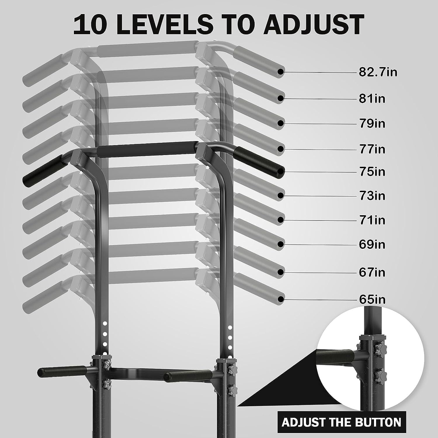 SOGES Height Adjustable Power Tower Dip Stands Pull up Bar Strength Training for Home Gym Black