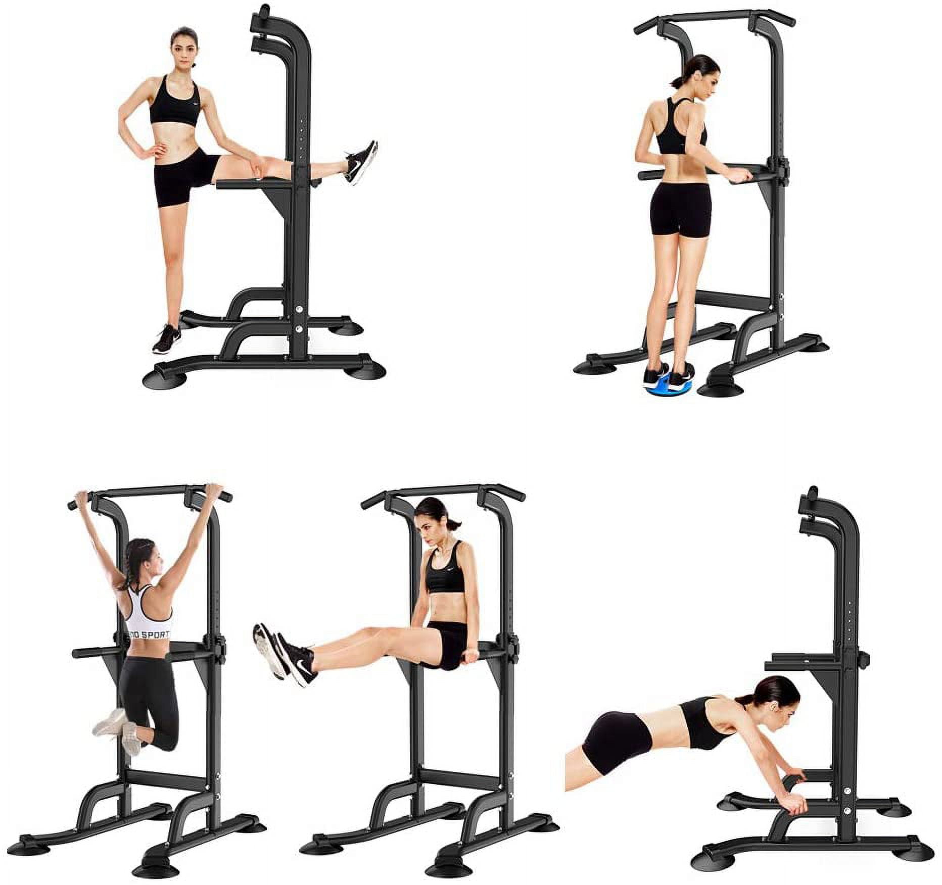 SOGES Height Adjustable Power Tower Dip Stands Pull up Bar Strength Training for Home Gym Black: Heavy-duty metal frame Height Adjustable Foot Pad Grasp the Ground Product Dimensions: 32.3Lx29.5Wx65~82.7H(inches). Weight capacity: 330LBS Firm material: SOGES Height Adjustable Power Tower: Heavy-duty metal frame, main support widened, splayed anti eversion base, which ensures stability and durability. Multi-gear regulation could adjust the height as your need. Note: Please assemble the product from the bottom up. Tighten lock screws after installing all of the parts. Do warm-up exercises before using it. 【Double Stability & Sturdy Construction】Our power tower owns 32.3″ long-size H-shape base.Power tower is made of high quality steel construction and holds up to 330LBS, The Upgraded and Bigger suction cups in the bottom with more durabitily and stability. 【10 Levels Height Adjustment】The height of pull up bar can be adjusted from 65~82.7″. Suitable for all adult fitness needs at home, office. And the lowest level is designed for children and the power tower is suitable for the whole family workout. 【6 Position Strong Full Body】With exercise equipment, you can easy to PULL UPS,CHIN UPS,DIPS,KNEE RAISES,PUSH UPS,LEG PRESSING. Build triceps, chest and shoulder muscles along with incredible upper body strength. whenever and wherever possible. 【Product Dimensions】32.3×29.5×65~82.7(inches). Weight capacity: 330lbs (150Kg). Multi gear regulation, and the adjustable height ranges in 74.8″~90.6″, you can adjust the height to fit your needs during workout.