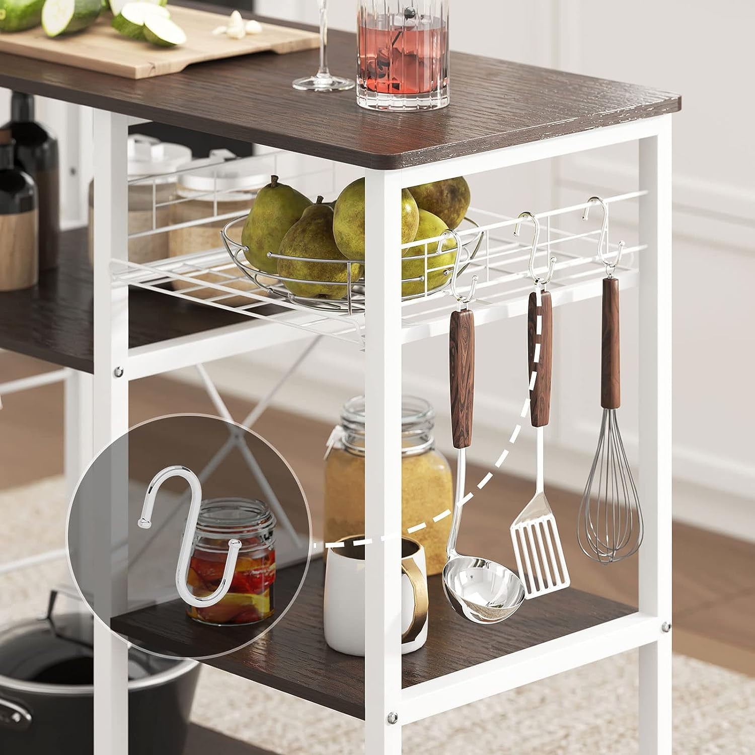 SOGES Multi-functional Kitchen Storage Carts with Shelves, Wood and Metal Black, 35.40 in