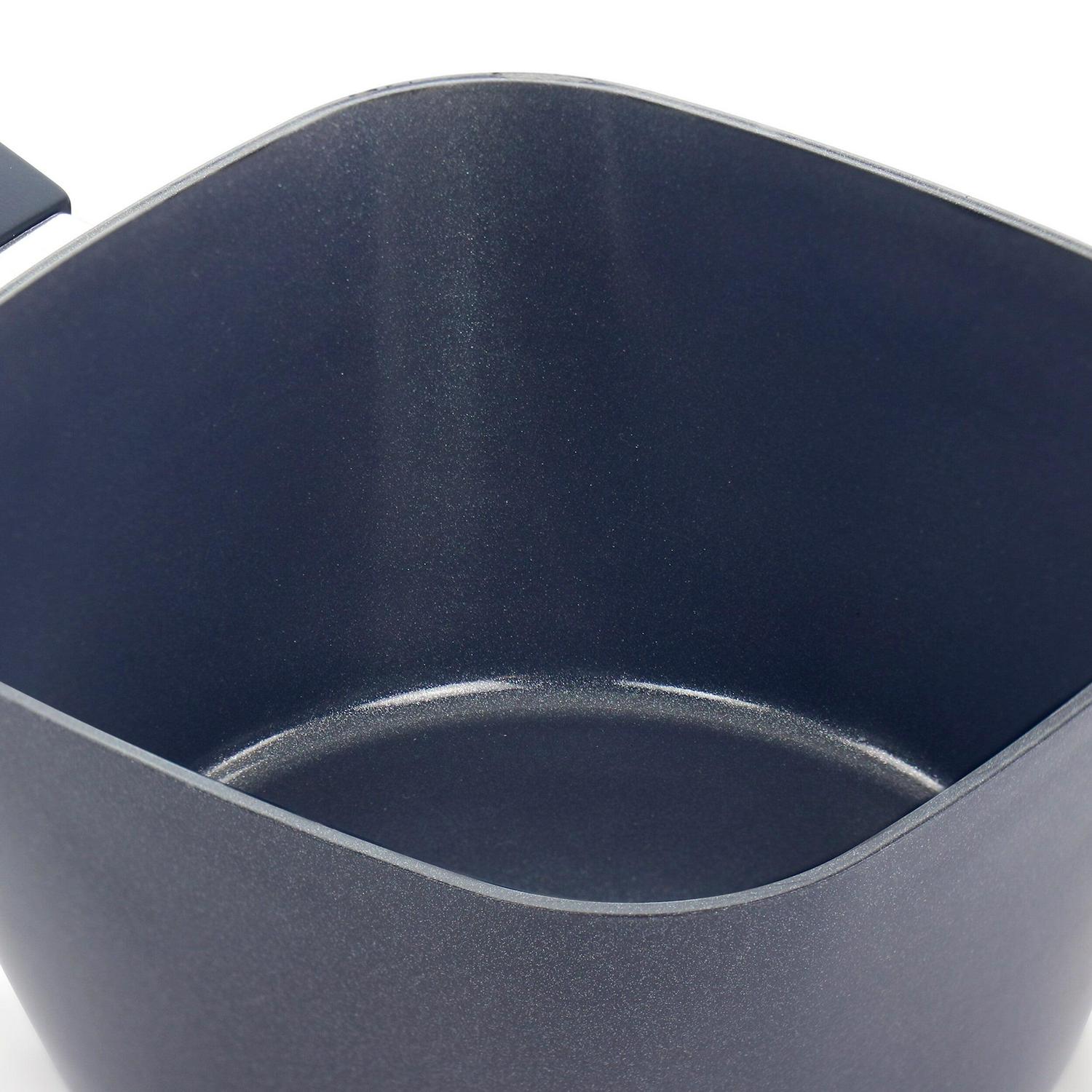 The Soho Lounge Diamond 10 Piece Ceramic Nonstick Aluminum Cookware Set features a modern Scandinavian aesthetic that can pair up with any kitchen space design. The cookware’s special square shape allows a little more cooking space while providing built-in pouring spouts through each corner. It’s heavy gauge aluminum evenly heats up while the ceramic nonstick surface makes cooking a lot easier. Cook a large array of meals for gatherings, dinner parties, and family nights.